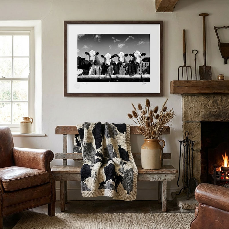 Curious Cows, Fine Art Black & White Print by Patrick Donald. Award-winning photographer who takes pride in his craft. His Framed Photography of Ireland is Delivered to your door from his studio in Kilkenny