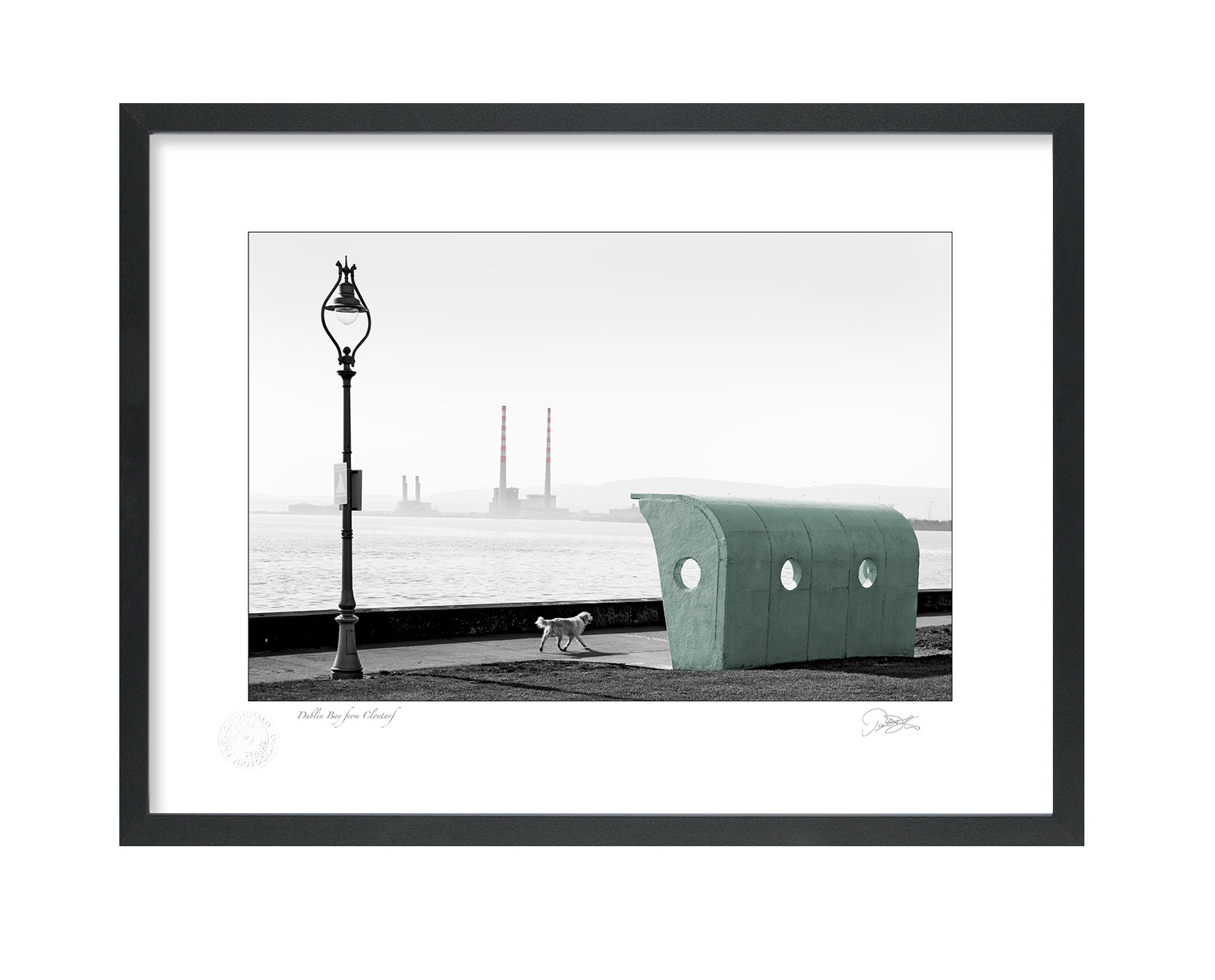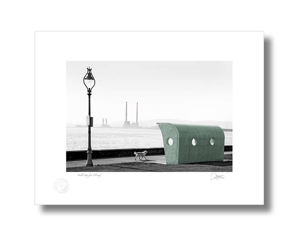 ‘Clontarf with the green shelter and a dog walking by in the centre of the scene with Dublin Bay and Poolbeg Chimneys in the background is one of the more popular Dublin images the simplicity of composition just shows you that what you leave out of a picture is as important as to what you keep in’