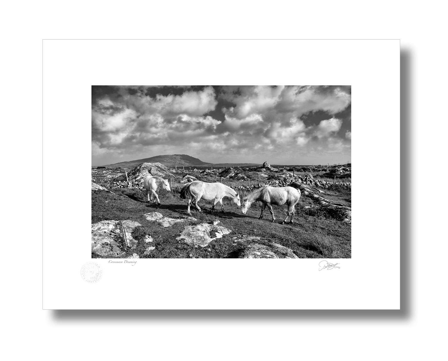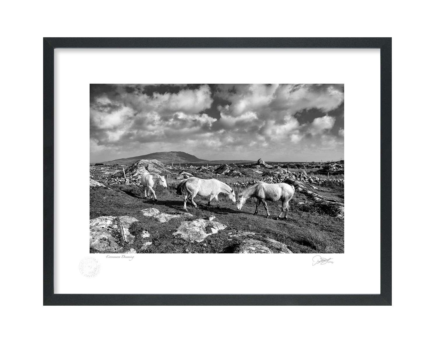 Connemara Horses is a Fine Art Black & White Print by Patrick Donald. Framed Photography of Ireland is Delivered to your door from his studio in Kilkenny, Award-winning Irish Documentary photographer who takes pride in his craft.