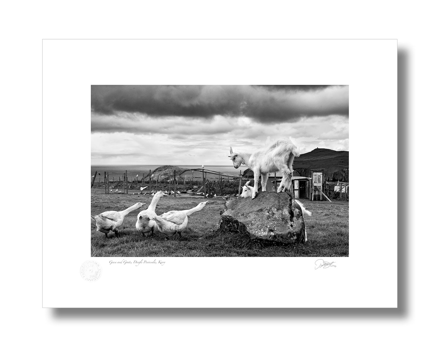 Geese and Goats is a Fine Art Black & White Print by Patrick Donald. Framed Photography of Ireland is Delivered to your door from his studio in Kilkenny. An Award-winning photographer who takes pride in his craft.