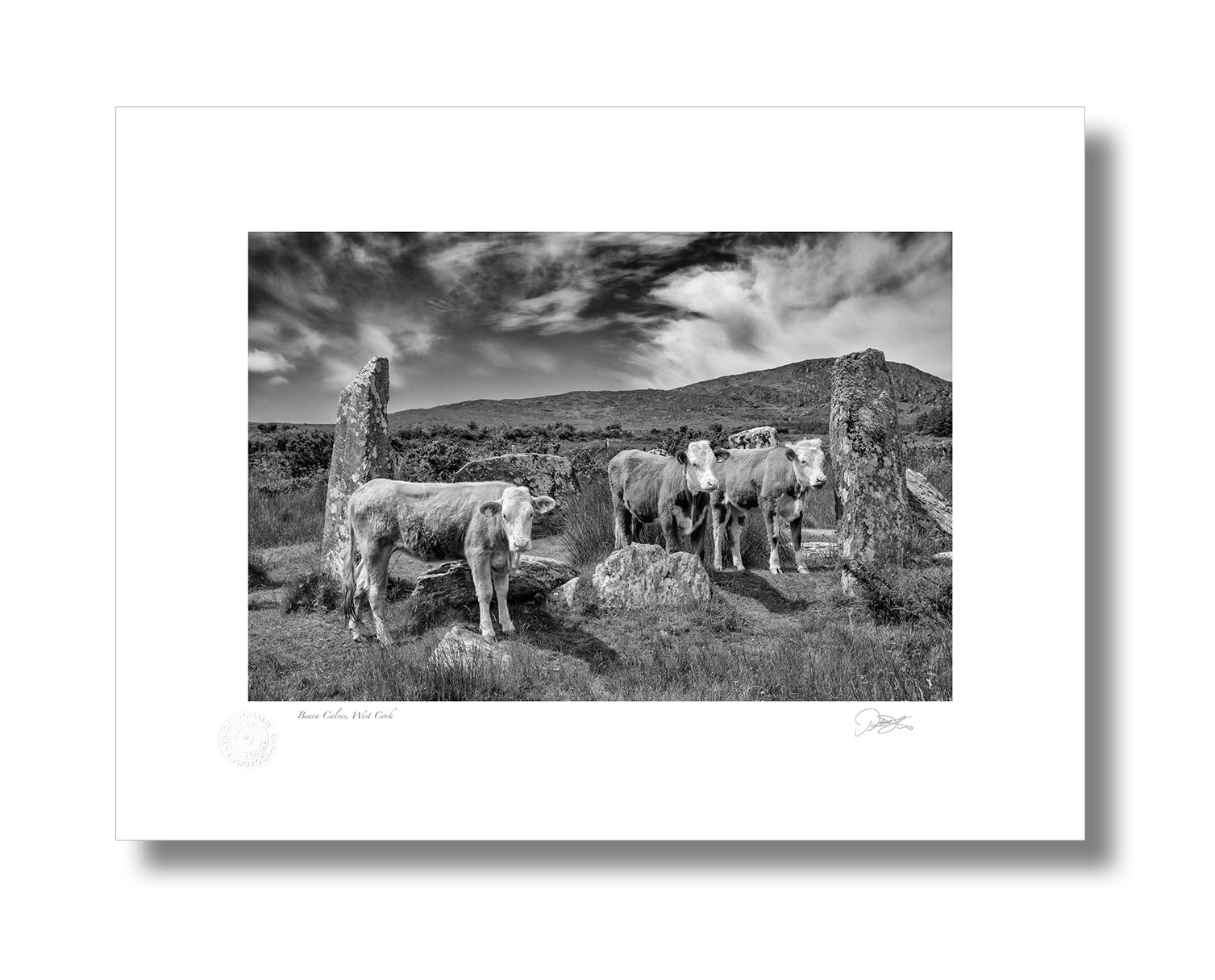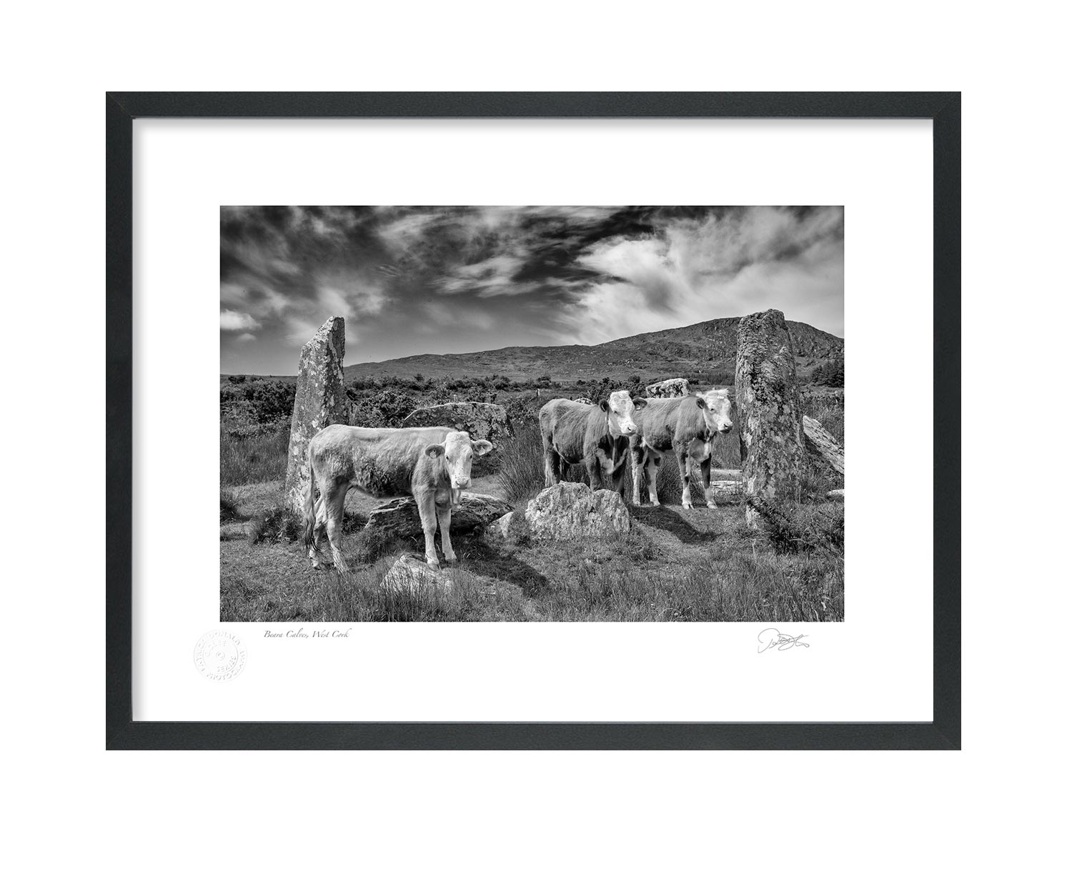Beara Calves West Cork is a Fine Art Black and white Open Edition Print by Patrick Donald. Framed Photography of Ireland is Delivered to your door from his studio in Kilkenny, an Award-winning Irish Landscape and documentary photographer who takes pride in his craft.