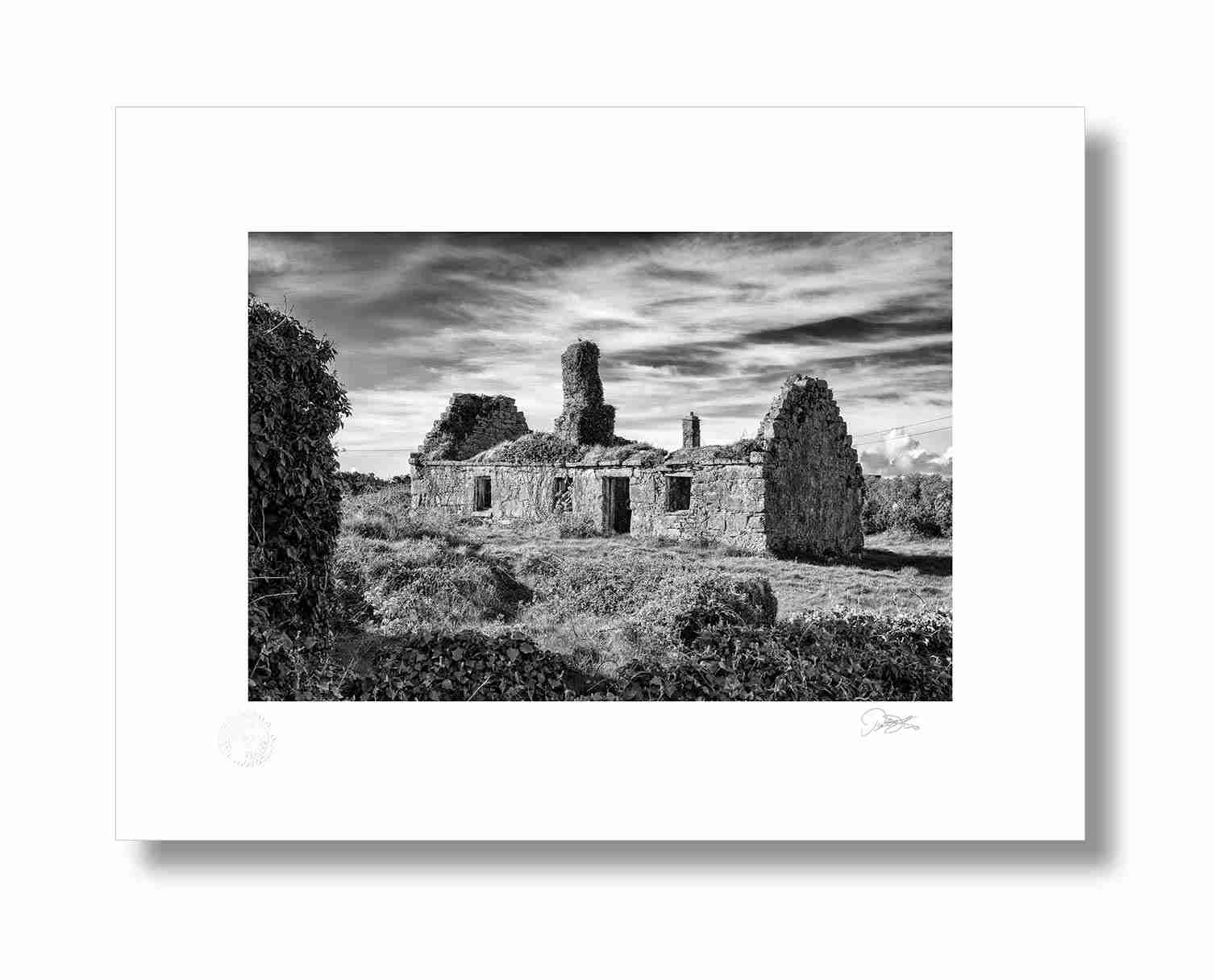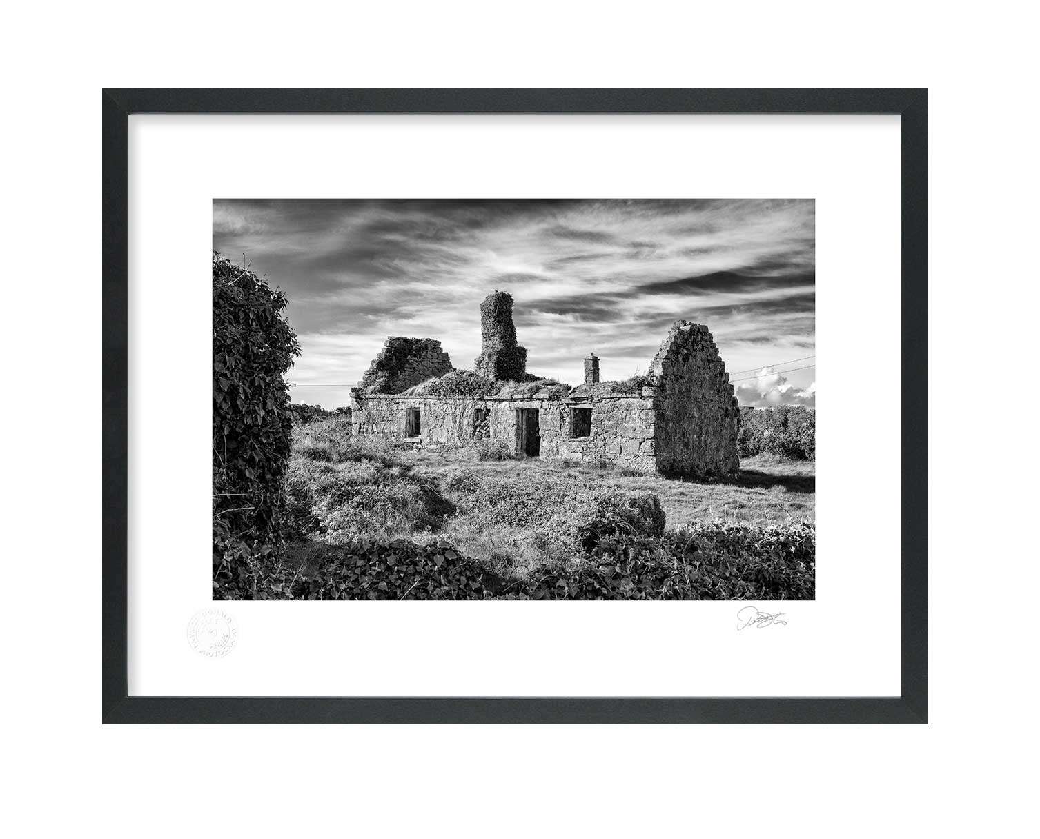 Traditional Irish Cottage Ruin, Aran Islands is a Fine Art black and white Print by Patrick Donald. Framed Photography of Ireland is delivered to your door from his studio in Kilkenny—an Award-winning Irish photographer who takes pride in his craft.