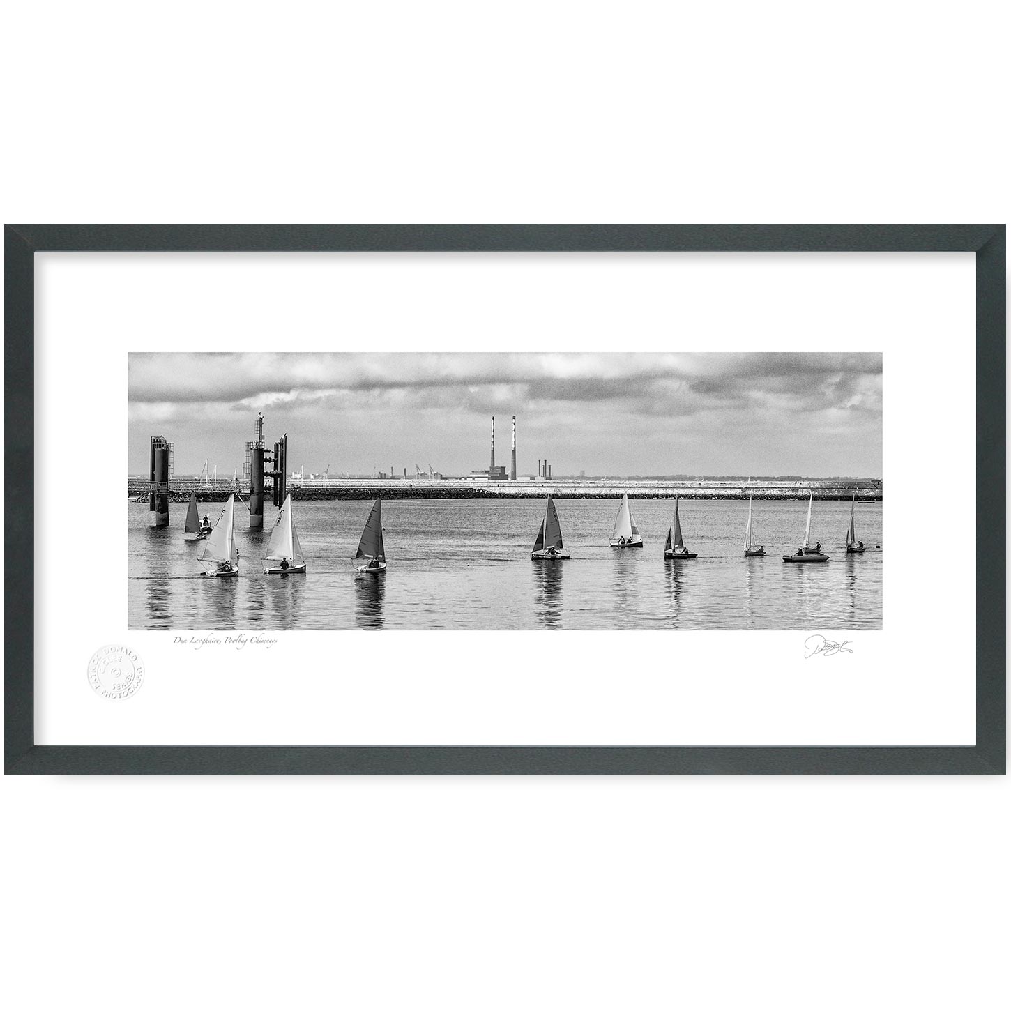 Dun Laoghaire Poolbeg Chimneys – Fine Art Black & White Print by Patrick Donald. Framed Photography of Ireland is Delivered to your door from his studio in Kilkenny—an Award-winning photographer who takes pride in his craft.