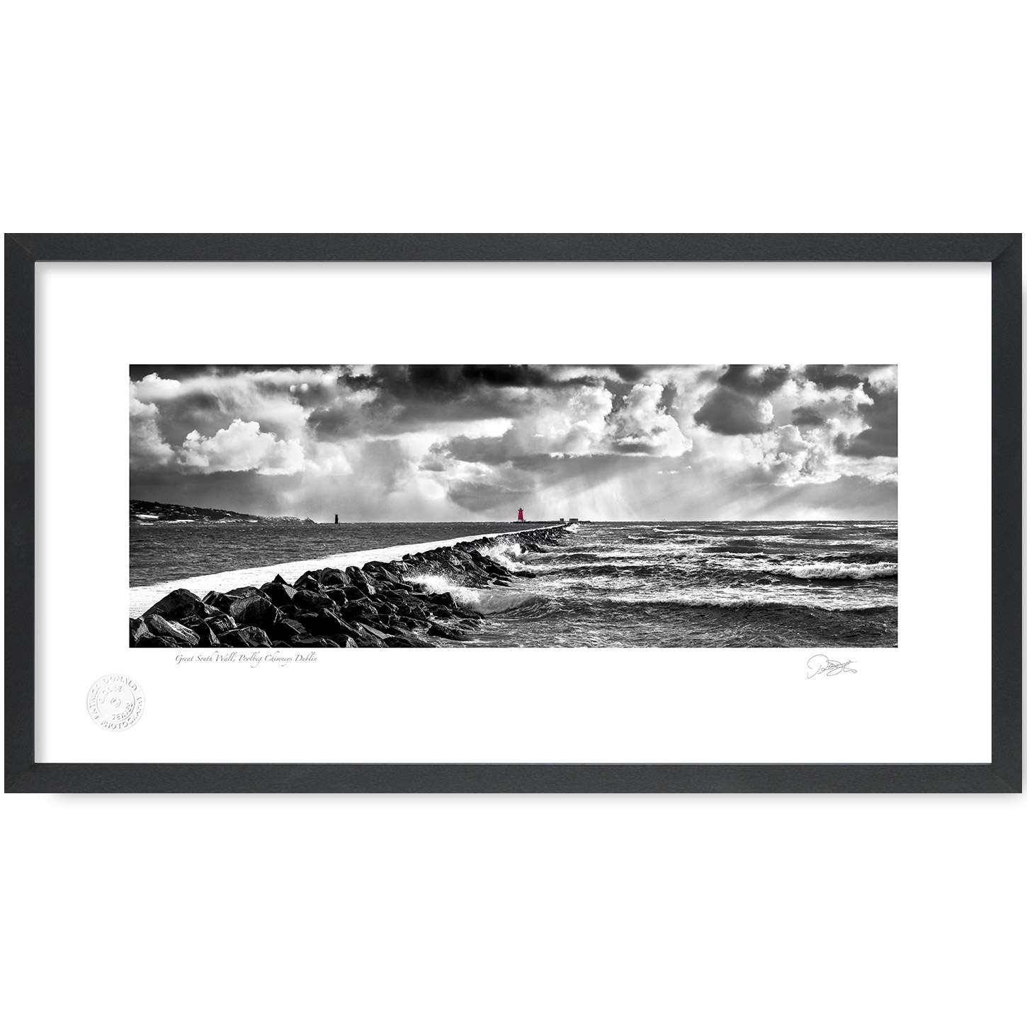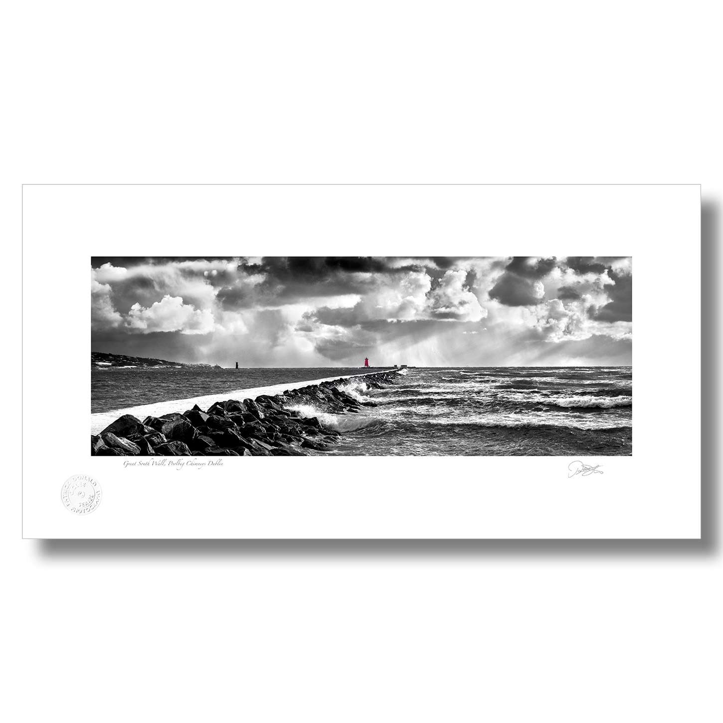 Great South Wall Poolbeg Lighthouse Dublin Bay is a Fine Art Black & White Open Edition Print by Patrick Donald. Framed Photography of Ireland is Delivered to your door from his studio in Kilkenny, Award-winning Irish Landscape & Documentary photographer who takes pride in his craft.