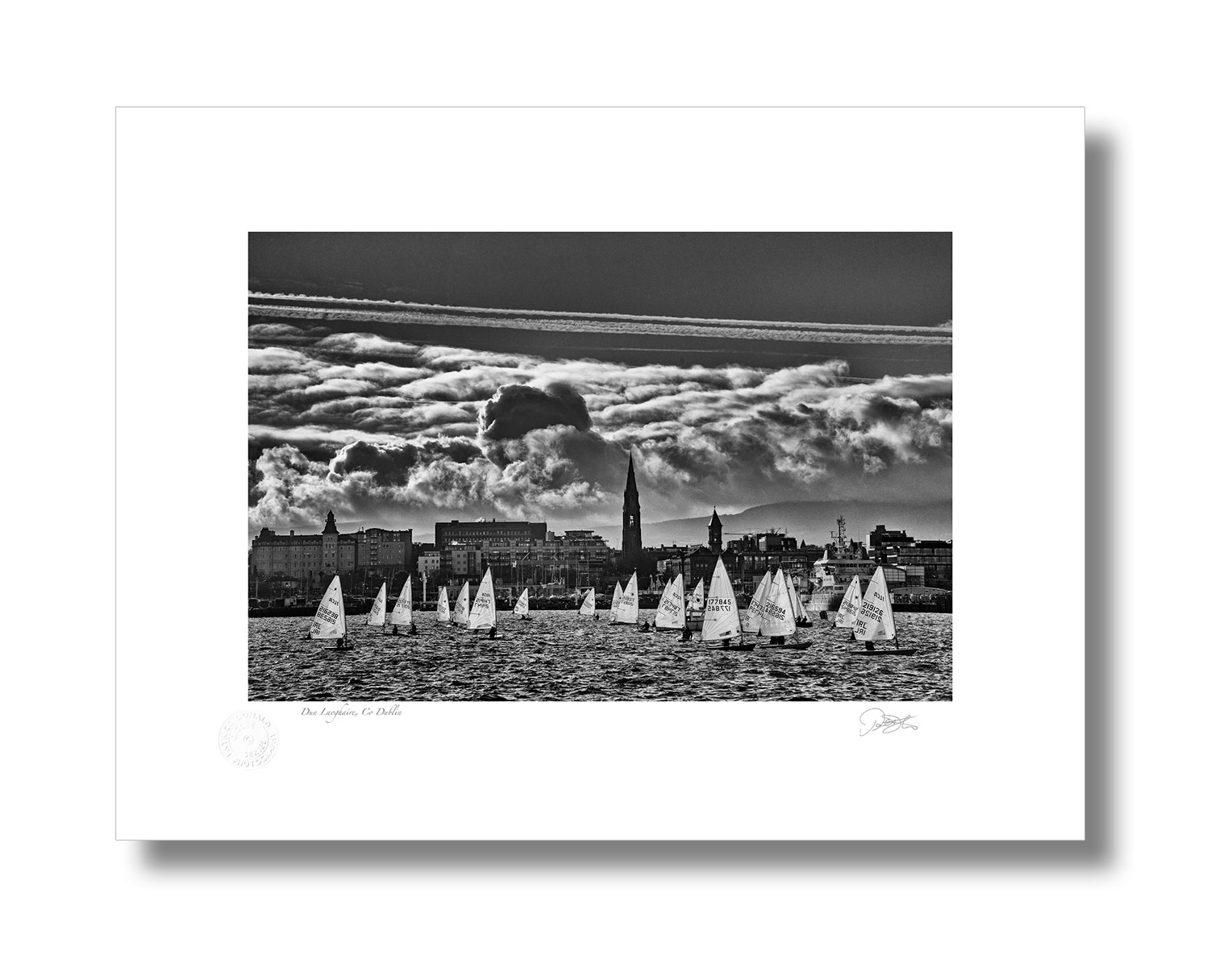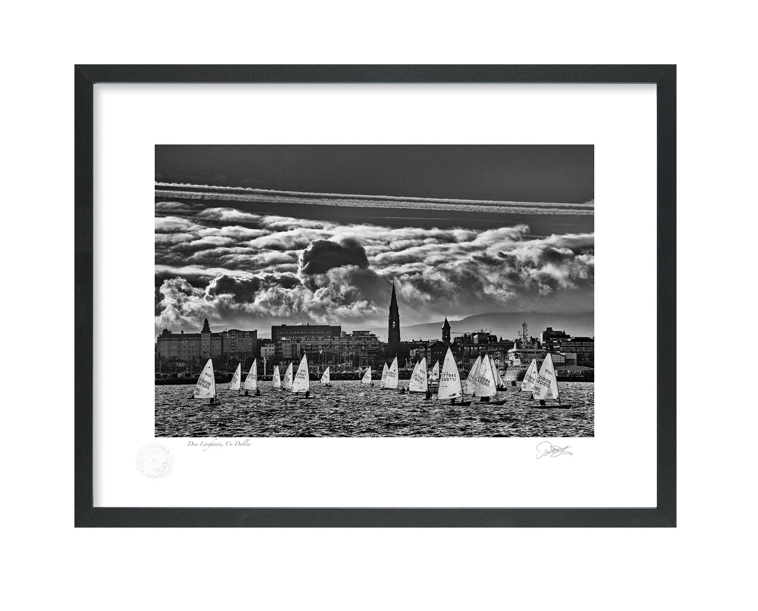 Dun Laoghaire Harbour is a Fine Art Black and White Open Edition Print by Patrick Donald. Framed Photography of Ireland is Delivered to your door from his studio in Kilkenny—an Award-winning Irish Documentary photographer who takes pride in his craft.