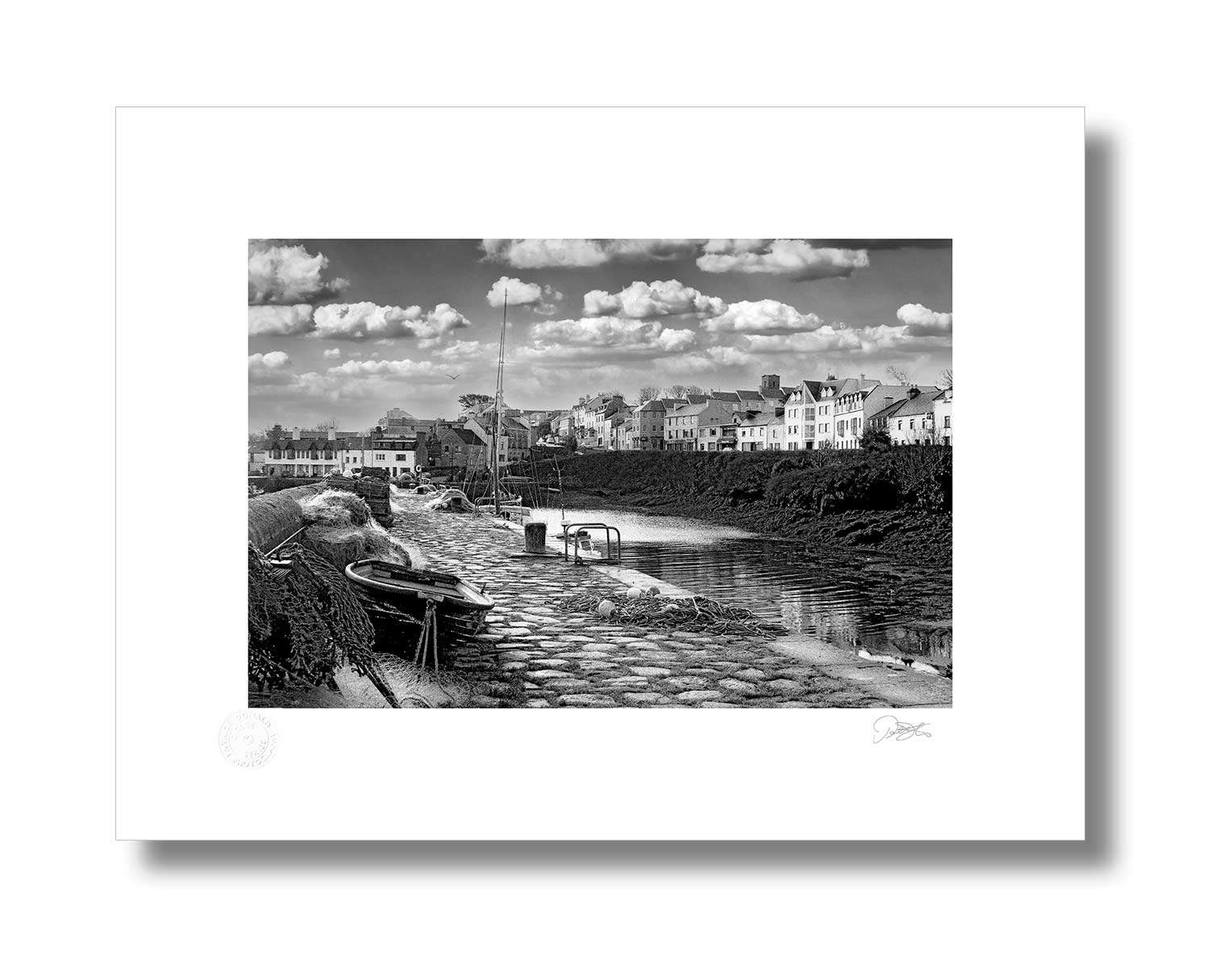 Roundstone Harbour, Connemara is a Fine Art black and white Print by Patrick Donald. Framed Photography of Ireland is delivered to your door from his studio in Kilkenny by an Award-winning Irish photographer who takes pride in his craft.