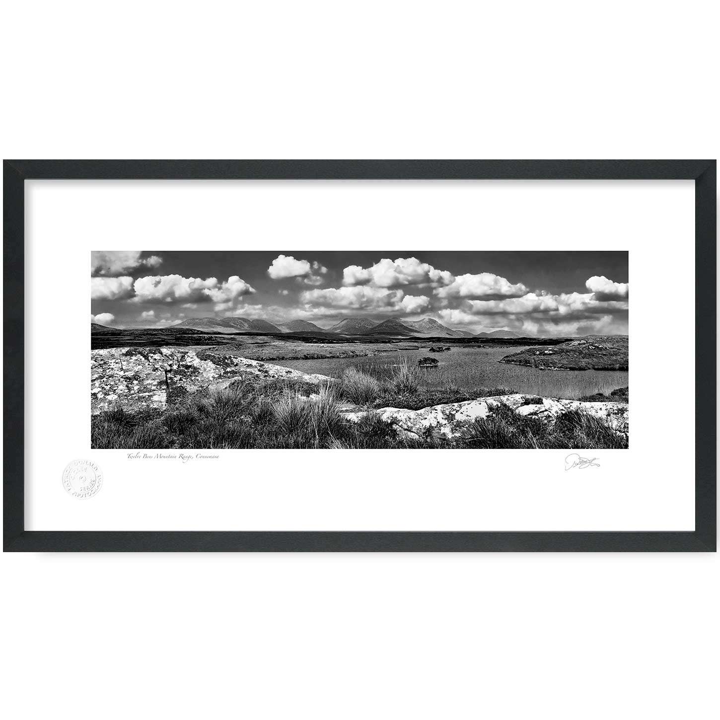 Twelve Bens Mountain Range, Connemara is a Fine Art Black & White Open Edition Print by Patrick Donald. Framed Photography of Ireland is Delivered to your door from his studio in Kilkenny, Award-winning Irish Landscape & Documentary photographer who takes pride in his craft.