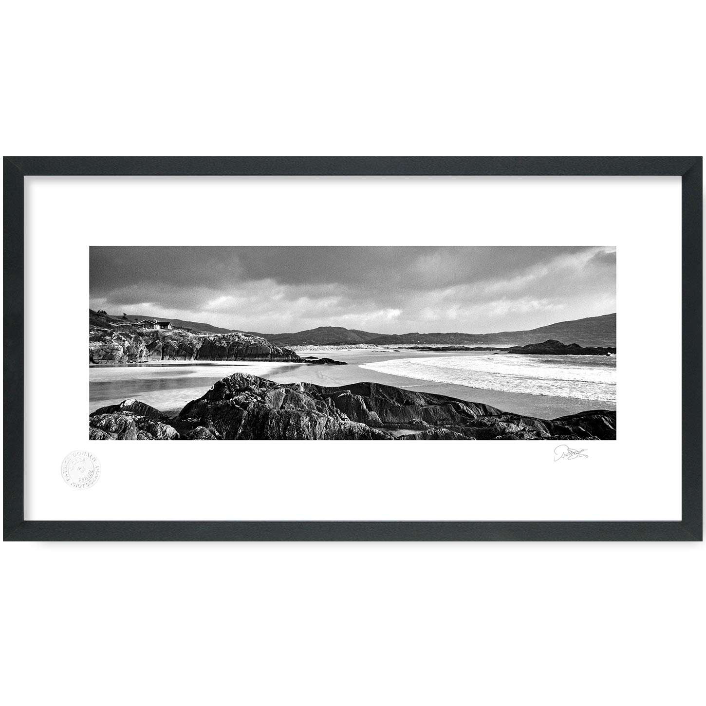 Derrynane Beach View, Kerry is a fine art black and white print by Patrick Donald. Framed Photography of Ireland is delivered to your door from his studio in Kilkenny—an Award-winning photographer who takes pride in his craft.