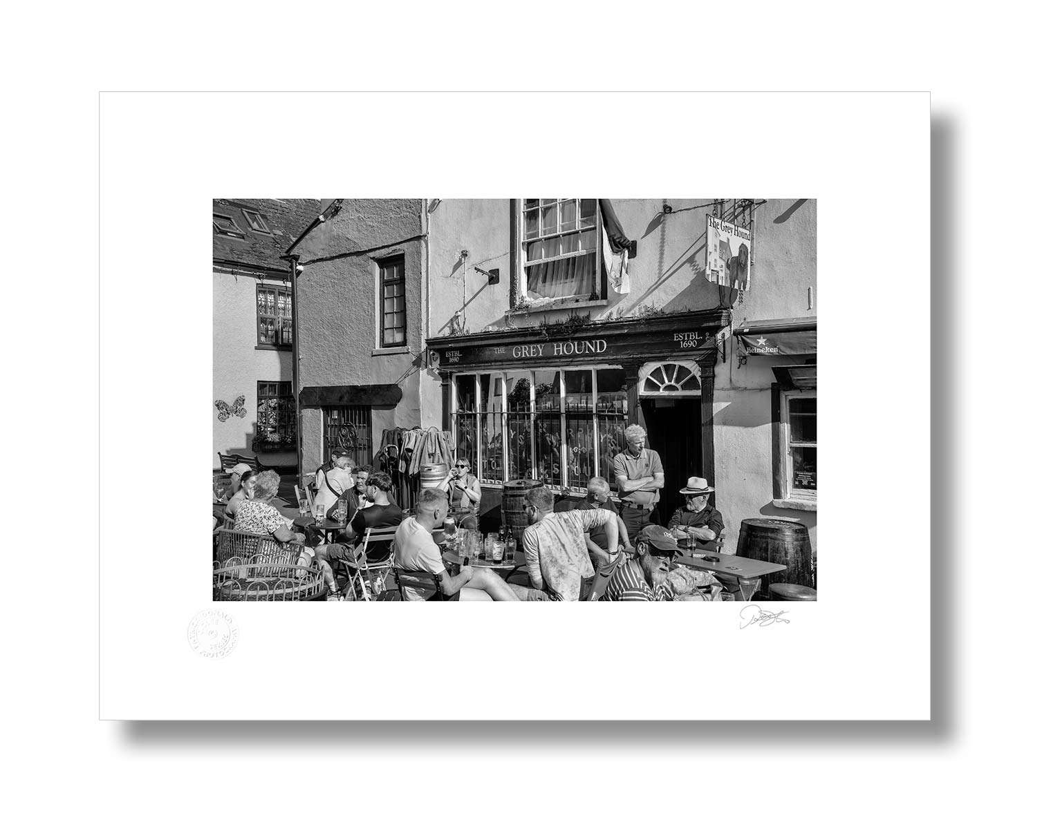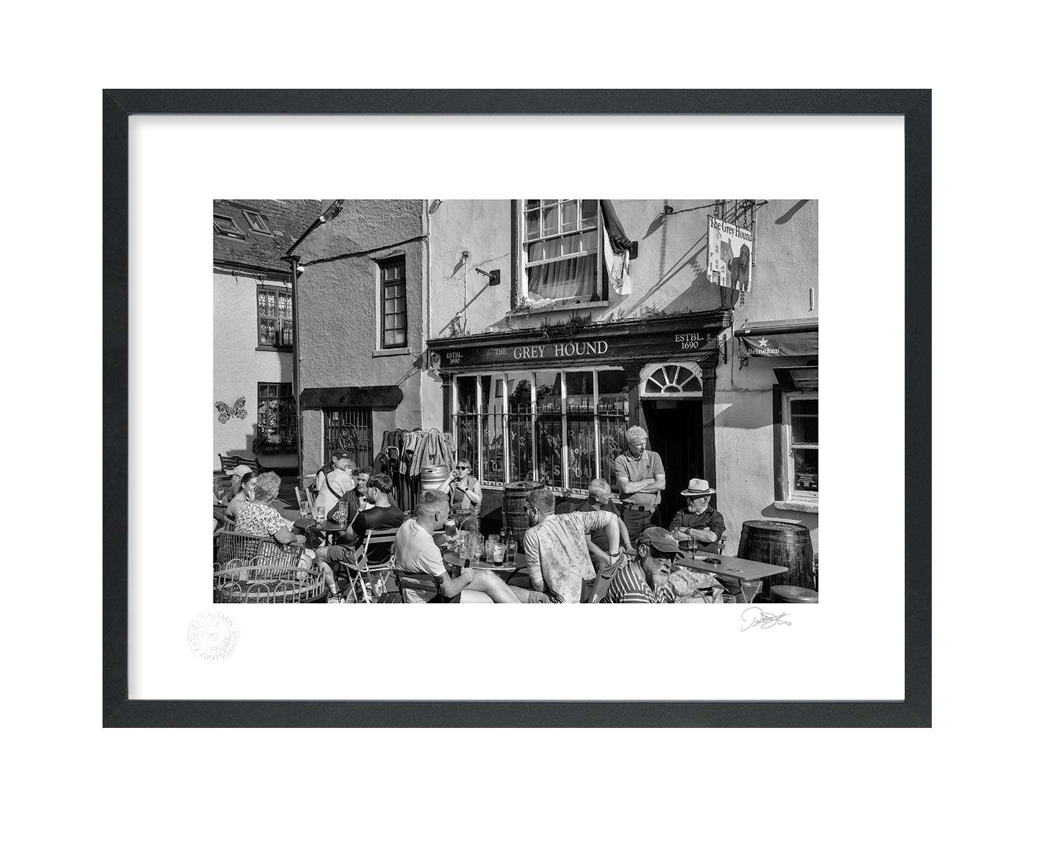 The Grey Hound Pub, Kinsale is a Fine Art black and white Print by Patrick Donald. Framed Photography of Ireland is delivered to your door from his studio in Kilkenny—an Award-winning Irish photographer who takes pride in his craft.