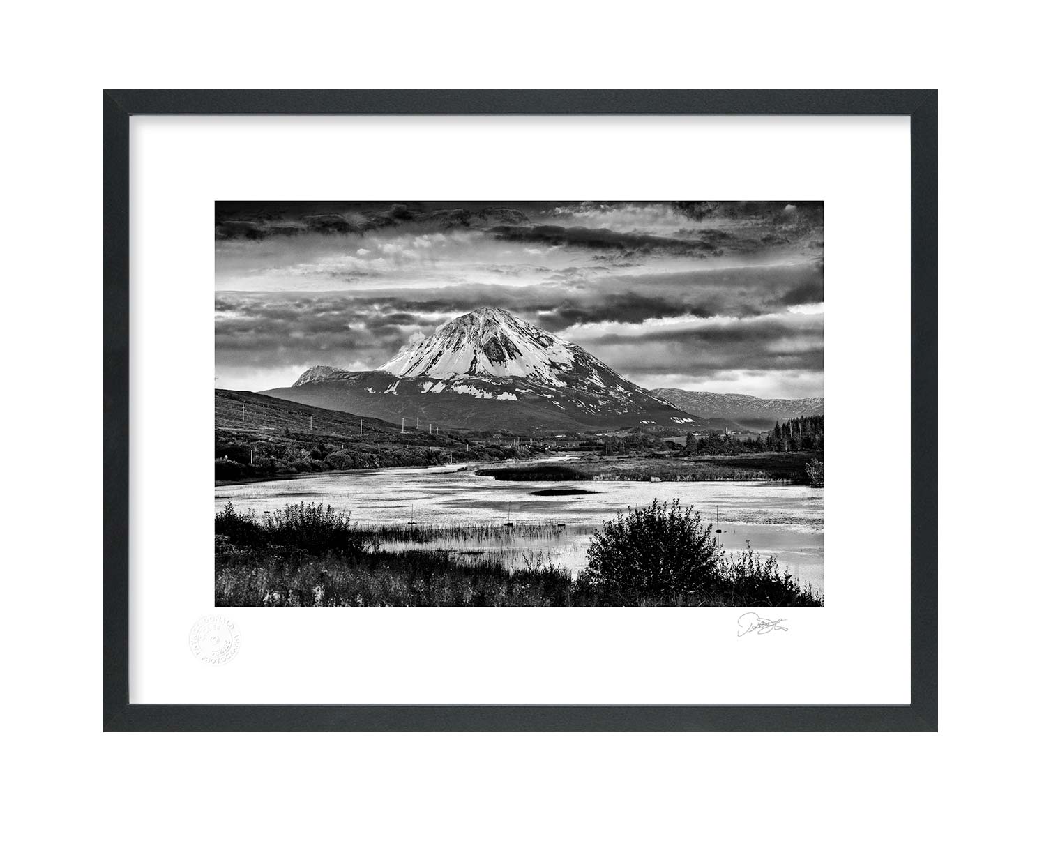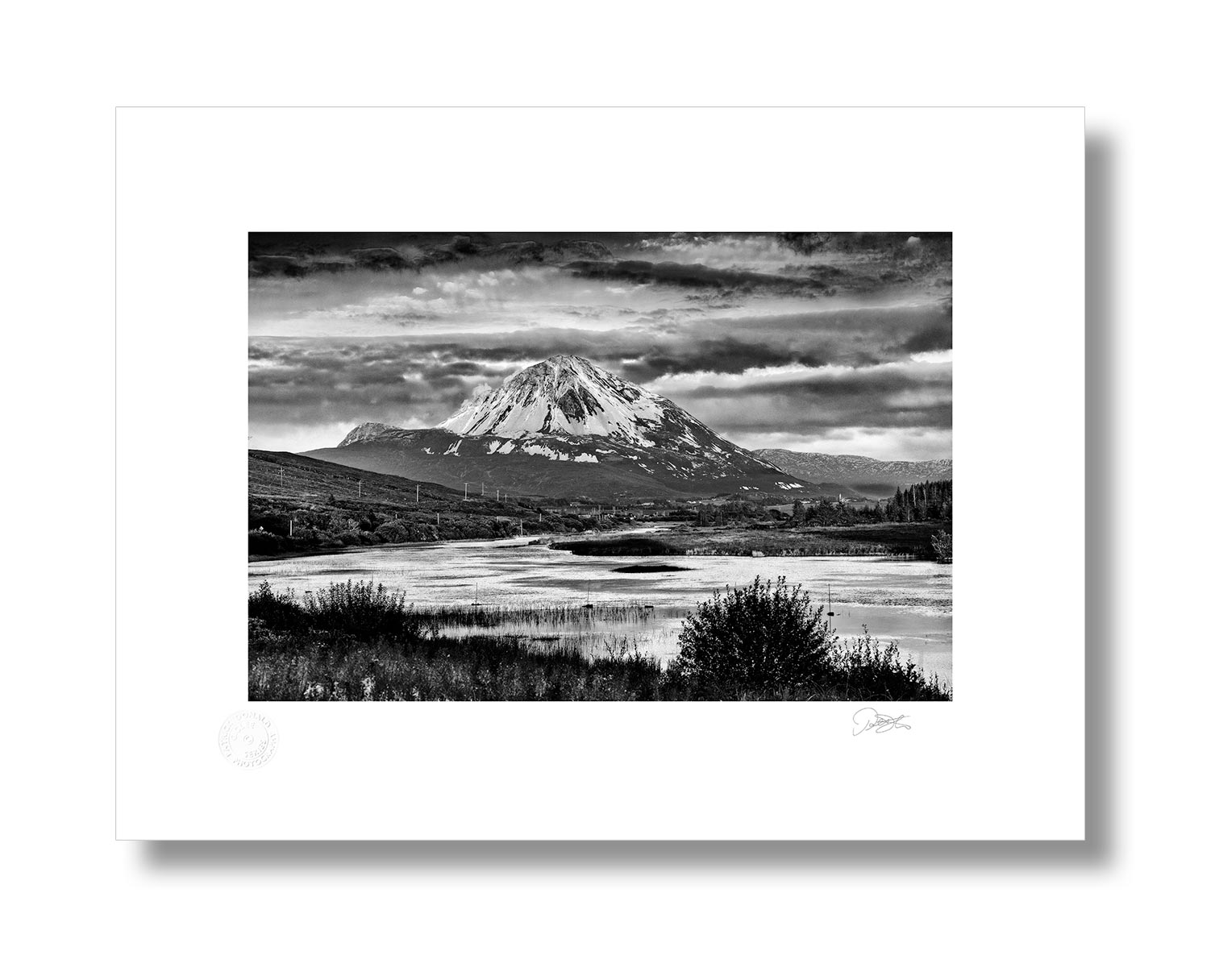 Errigal Mountain View, Donegal is a Fine Art black and white Print by Patrick Donald. Framed Photography of Ireland is delivered to your door from his studio in Kilkenny by an Award-winning Irish photographer who takes pride in his craft.