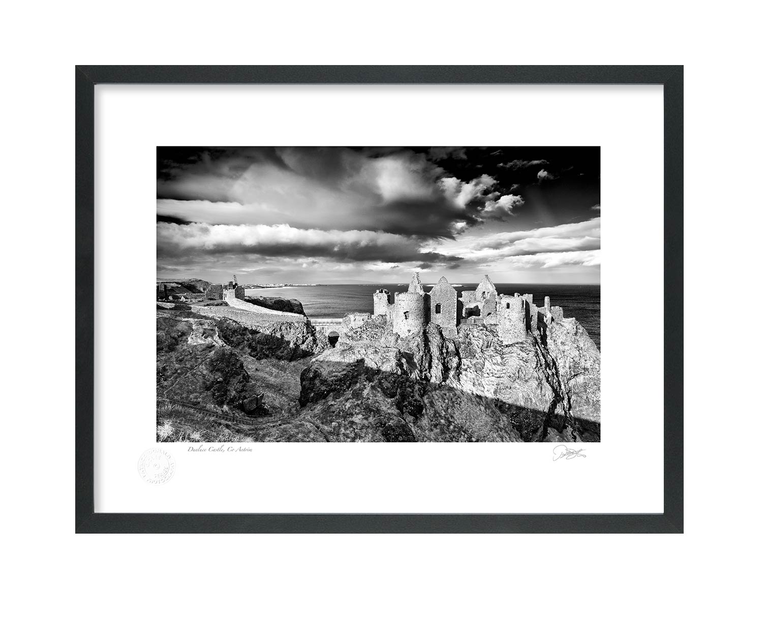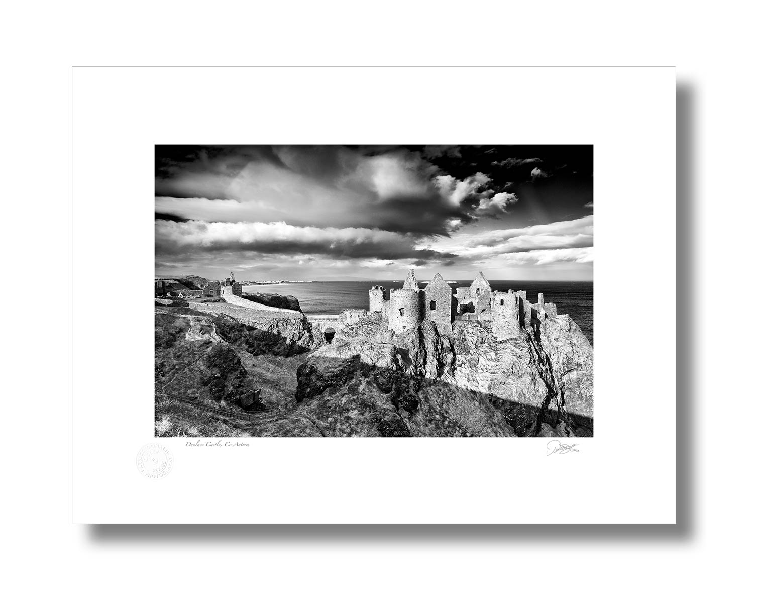 Dunluce Castle, Co Antrim is a Fine Art Black & White Open Edition Print by Patrick Donald. Framed Photography of Ireland is Delivered to your door from his studio in Kilkenny, Award-winning Irish Landscape & Documentary photographer who takes pride in his craft.