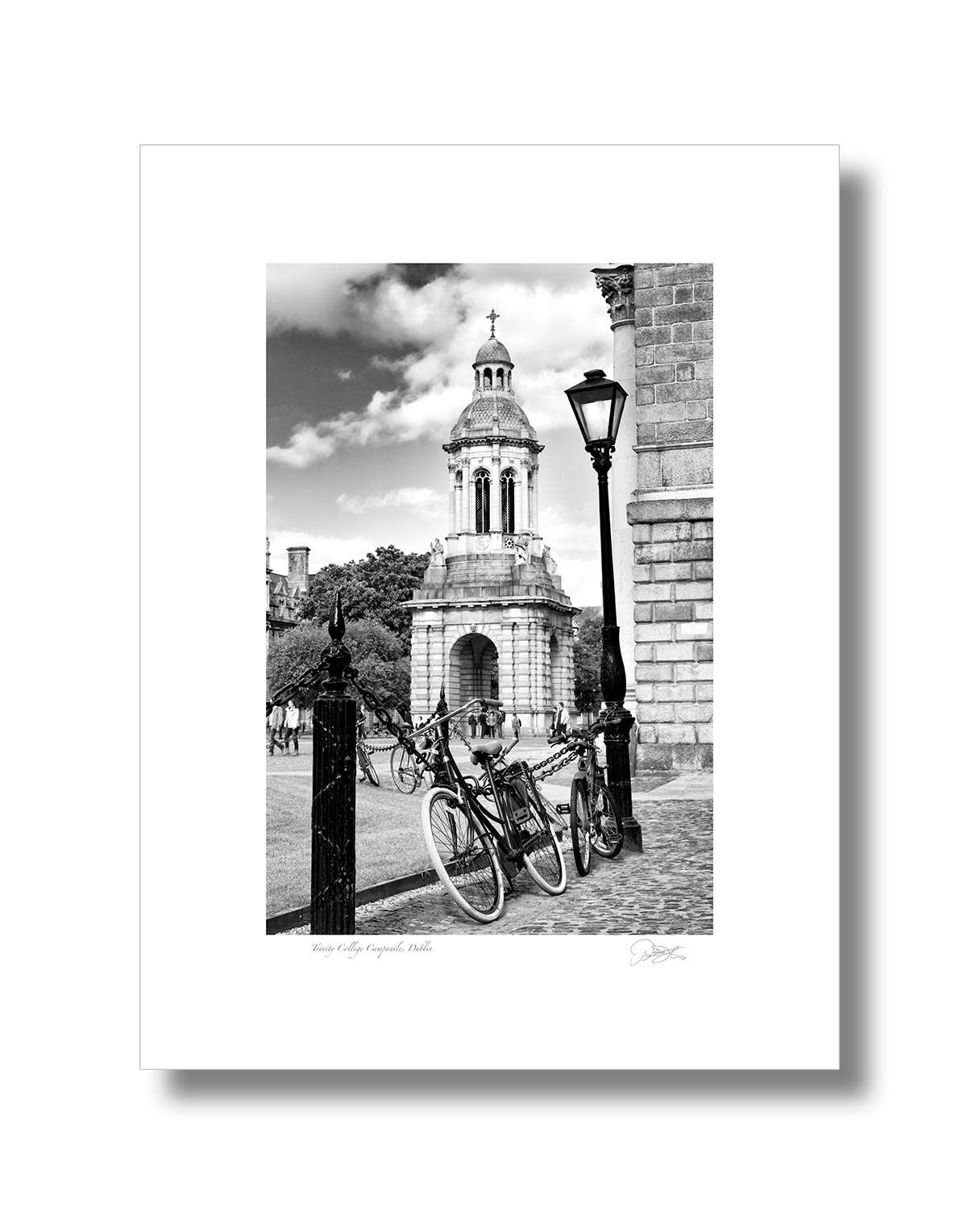 Trinity College Campanile is a Fine Art black and white Print by Patrick Donald. Framed Photography of Ireland is delivered to your door from his studio in Kilkenny by an Award-winning Irish photographer who takes pride in his craft.