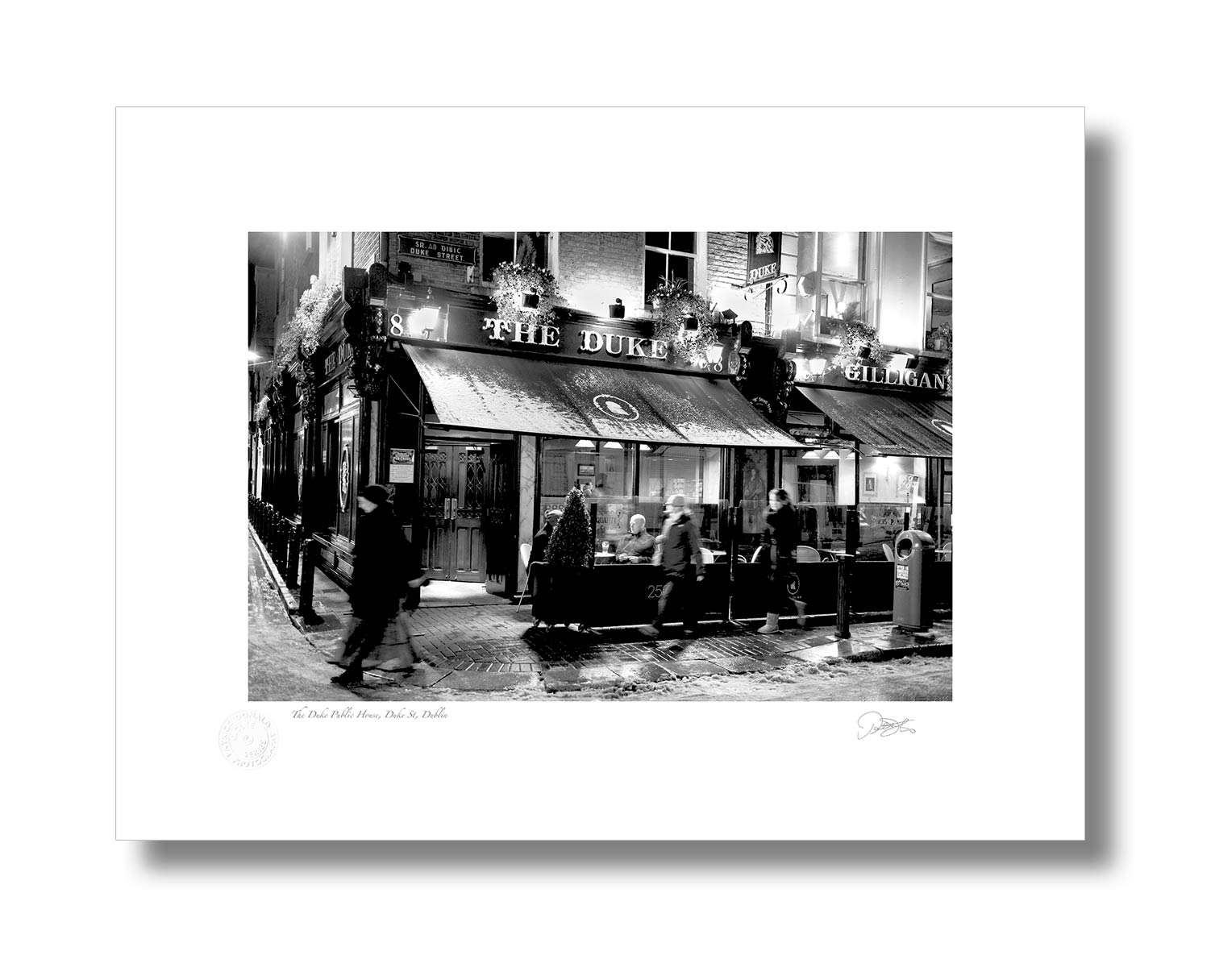 The Duke Public House, Duke St, Dublin is a Fine Art Black & White Print by Patrick Donald. Framed Photography of Ireland is Delivered to your door from his studio in Kilkenny. An Award-winning photographer who takes pride in his craft.