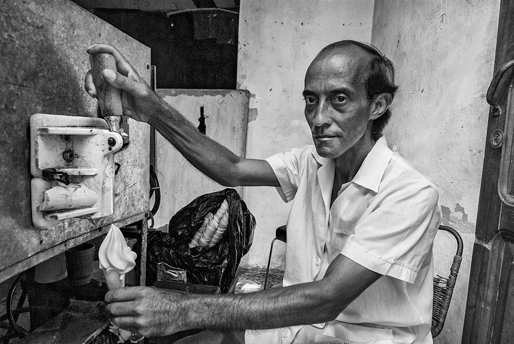 Ice Cream Vendor, Cuba is a Fine Art Black & White Limited Edition Print by Patrick Donald. Photography of Ireland is Delivered to your door from his studio in Kilkenny, Award-winning Irish Fine Art Documentary photographer who takes pride in his craft.