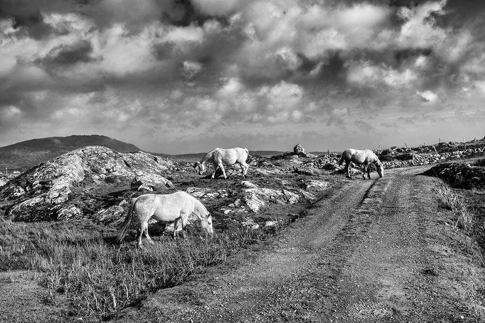 ‘As the title suggests, this photograph has a dream-like quality and gives a sense of nostalgia. The old country road and the horses grazing alongside it amongst the rocky lichen-covered rocks found across the Connemara landscape in beautiful Galway, the simplicity of a black and white image in this regard can add a timeless feeling.