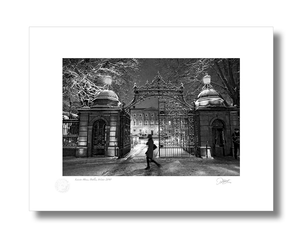 Leinster House Winter Scene is a Fine Art Black & White Print by Patrick Donald. Photography of Ireland is Delivered to your door from his studio in Kilkenny, an Award-winning Irish Fine Art Documentary photographer who takes pride in his craft.