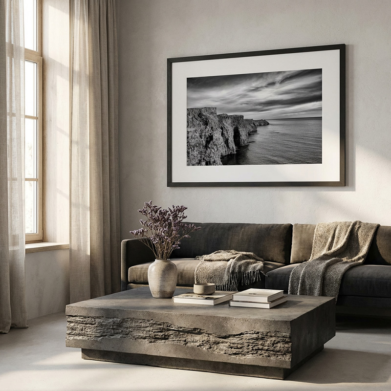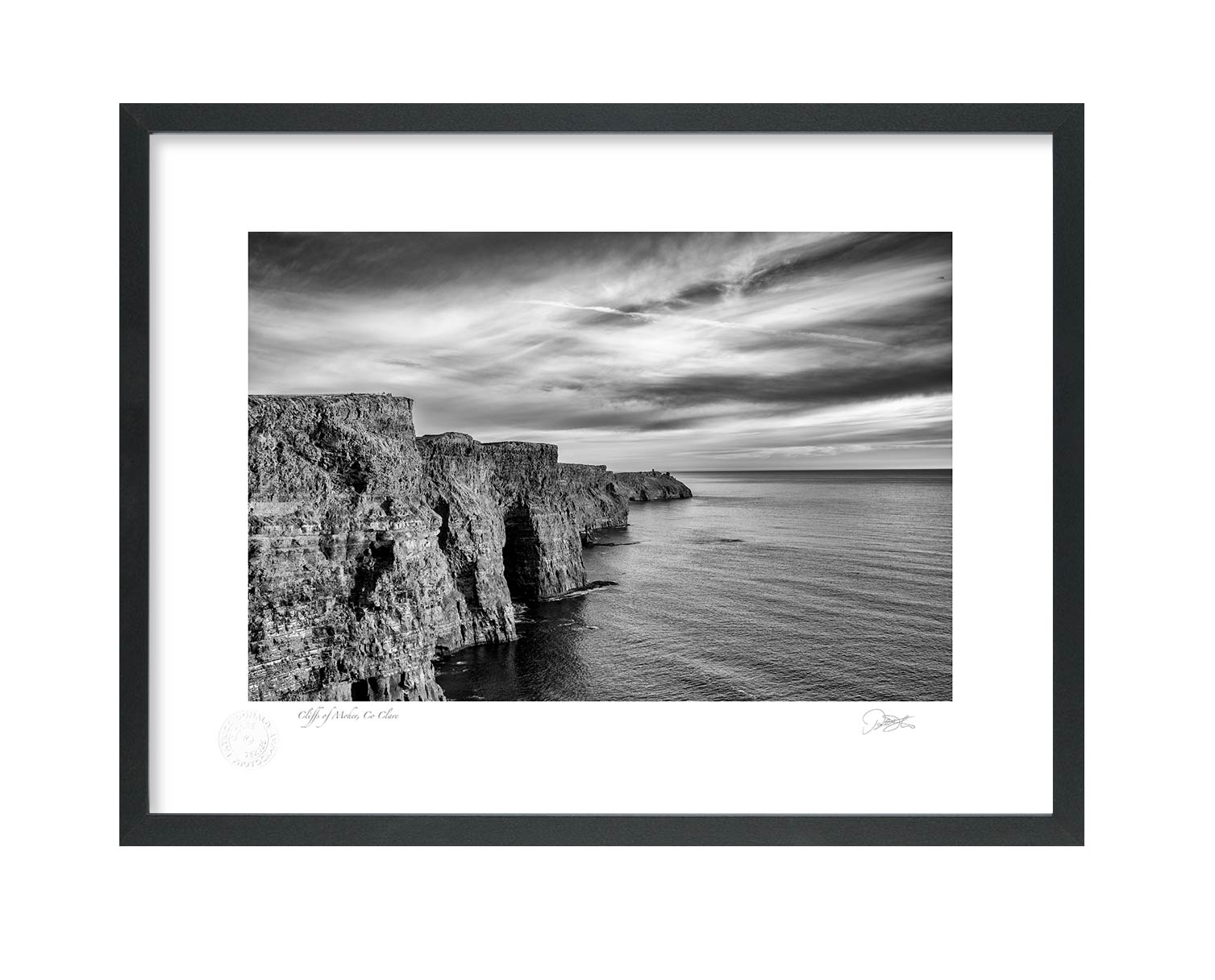 Cliffs of Moher Co Clare is a Fine Art Black & White Print by Patrick Donald. Framed Photography of Ireland is Delivered to your door from his studio in Kilkenny, an Award-winning Irish Documentary photographer who takes pride in his craft.