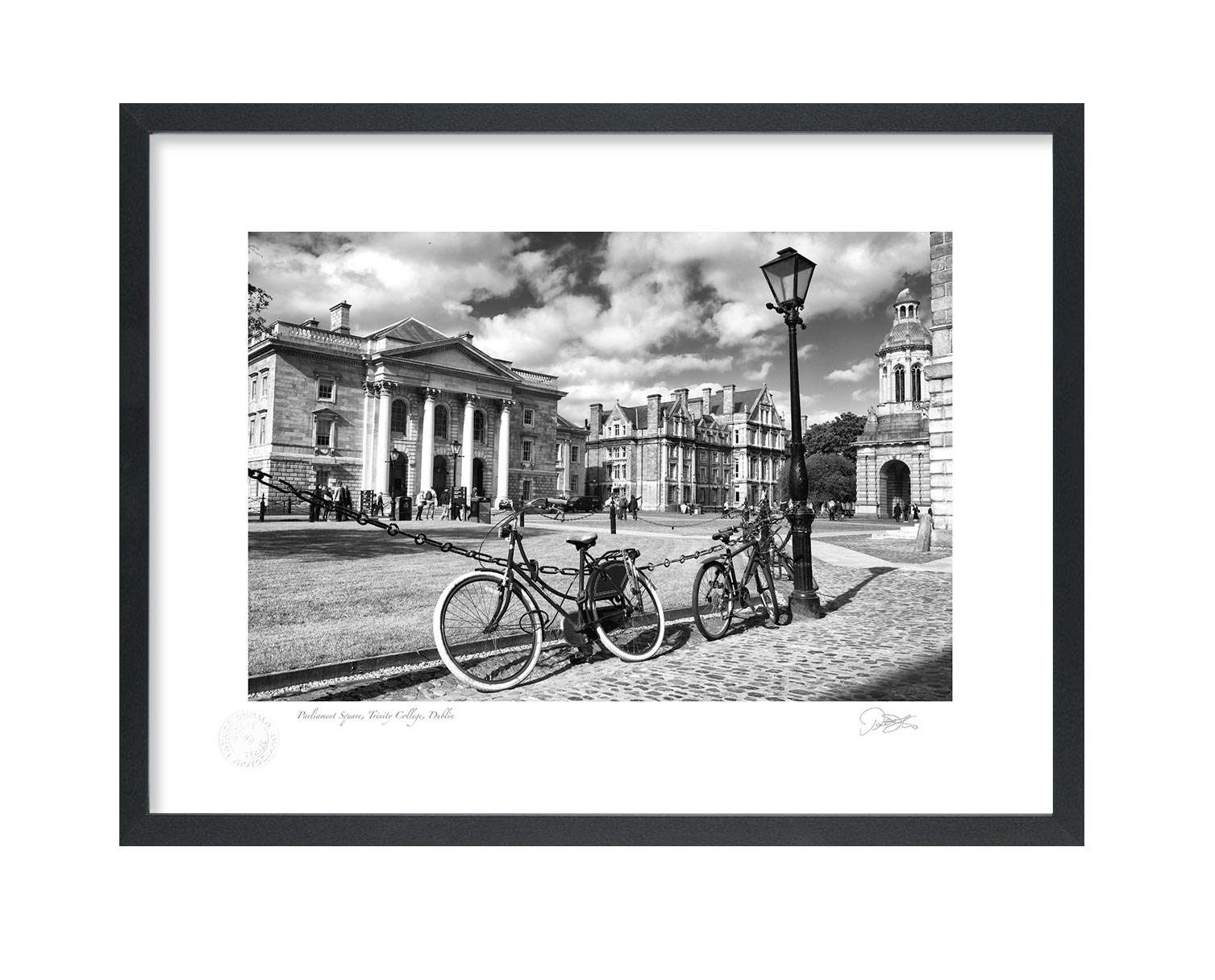 Parliament Square, Trinity College Dublin, is a Fine Art Black and white Print by Patrick Donald. Framed Photography of Ireland is Delivered to your door from his studio in Kilkenny—an Award-winning photographer who takes pride in his craft.
