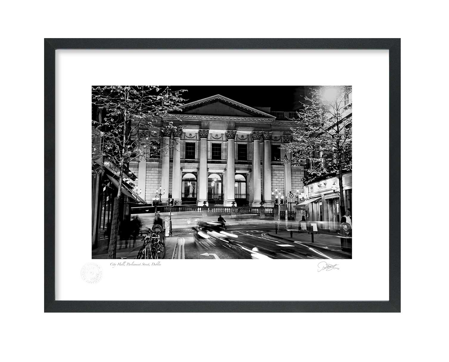 City Hall, Parliament Street, Dublin is a Fine Art Black & White Open Edition Print by Patrick Donald. Framed Photography of Ireland is Delivered to your door from his studio in Kilkenny, Award-winning Irish Landscape & Documentary photographer who takes pride in his craft.