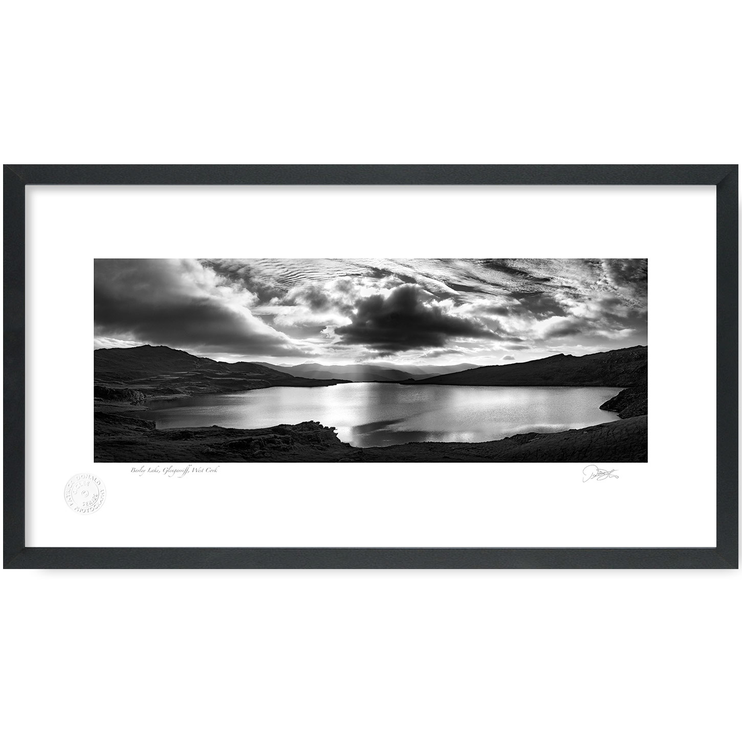 Barley Lake, Glengarriff, West Cork is a Fine Art Black & White Open Edition Print by Patrick Donald. Framed Photography of Ireland is Delivered to your door from his studio in Kilkenny, Award-winning Irish Landscape & Documentary photographer who takes pride in his craft.