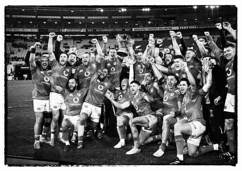 Ireland rugby team celebrate with the Steinberg Cup having won the series against New Zealand in style at the Wellington Stadium. This win puts them number one rugby nation in the world winning the series 2 to 1 and the final game Ireland scored 32 points and All Blacks 22.