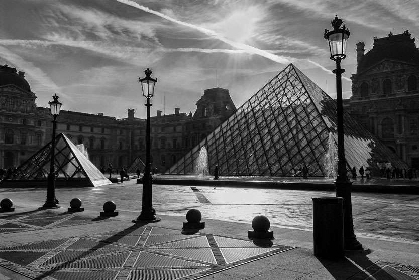 The Louvre, Paris is a Fine Art Black & White Print by Patrick Donald. Framed Photography of Ireland is Delivered to your door from his studio in Kilkenny, Award-winning Irish Documentary photographer who takes pride in his craft.