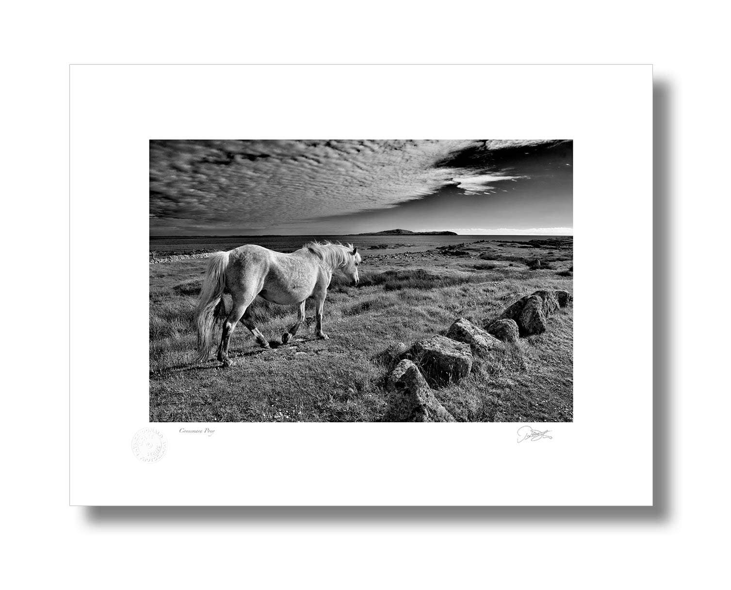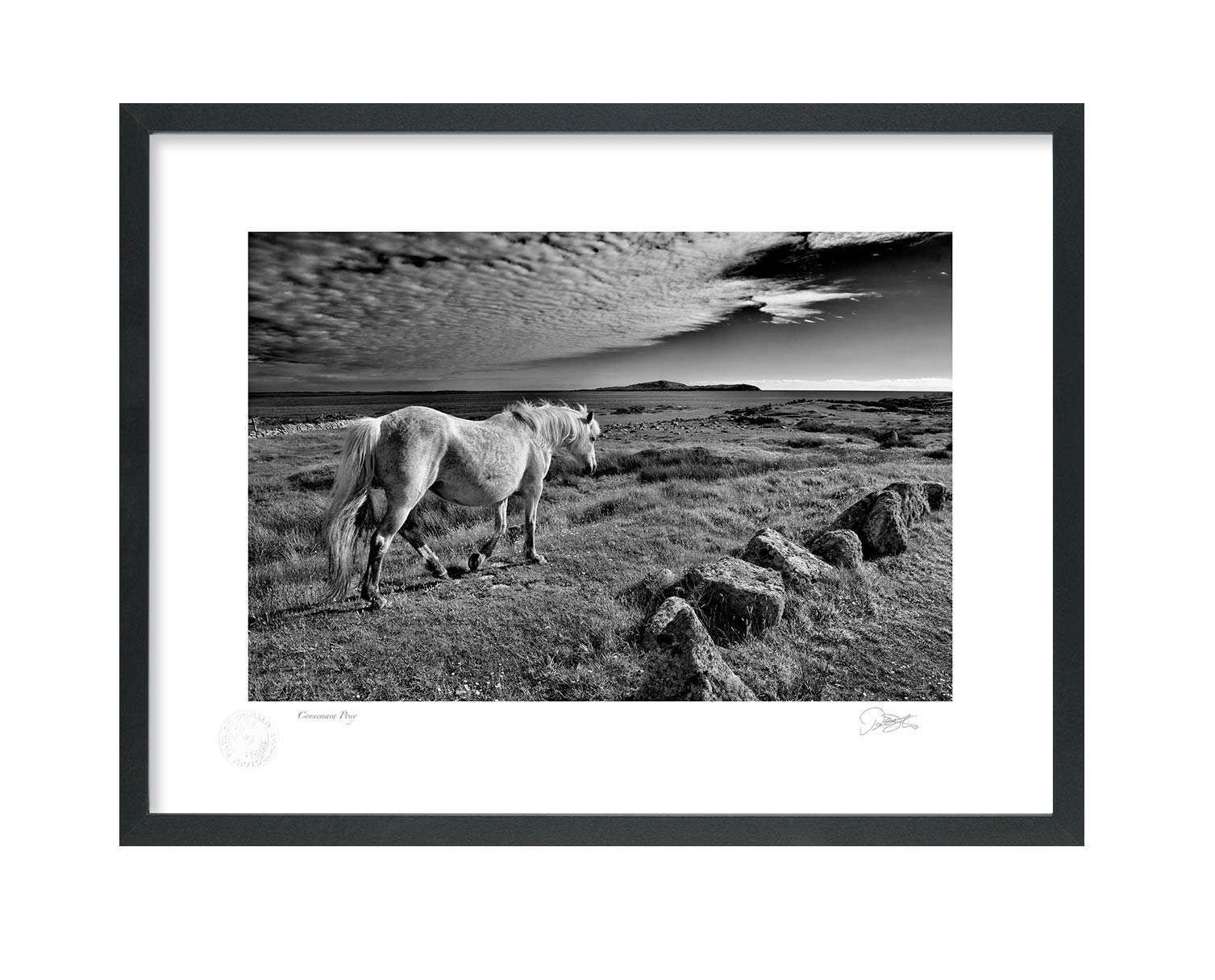 Connemara Pony is a Fine Art Black & White Print by Patrick Donald. Framed Photography of Ireland is Delivered to your door from his studio in Kilkenny, Award-winning Irish Documentary photographer who takes pride in his craft.