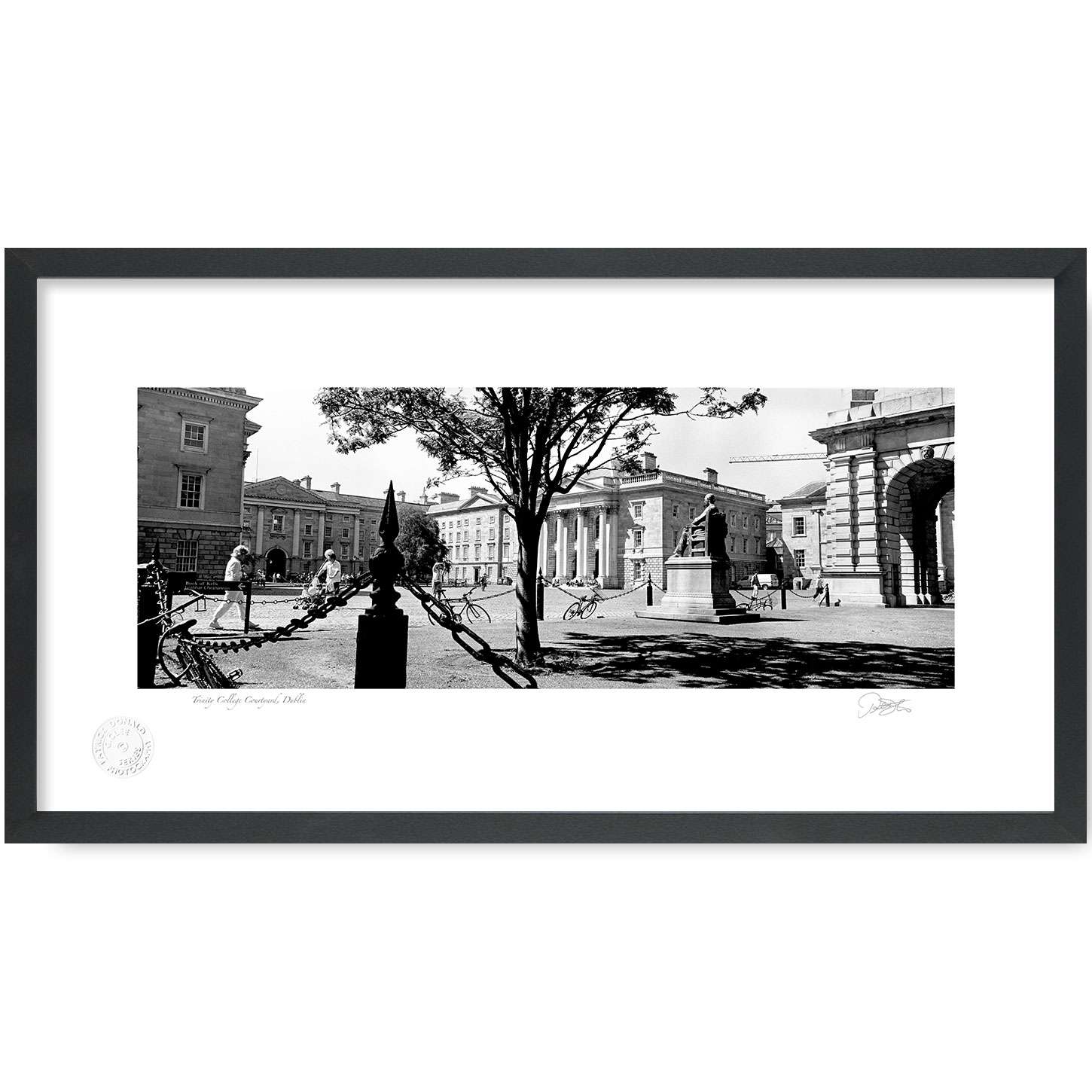 Trinity College, Parliament Square Dublin is a Fine Art Black & White Open Edition Print by Patrick Donald. Framed Photography of Ireland is Delivered to your door from his studio in Kilkenny, Award-winning Irish Landscape & Documentary photographer who takes pride in his craft.