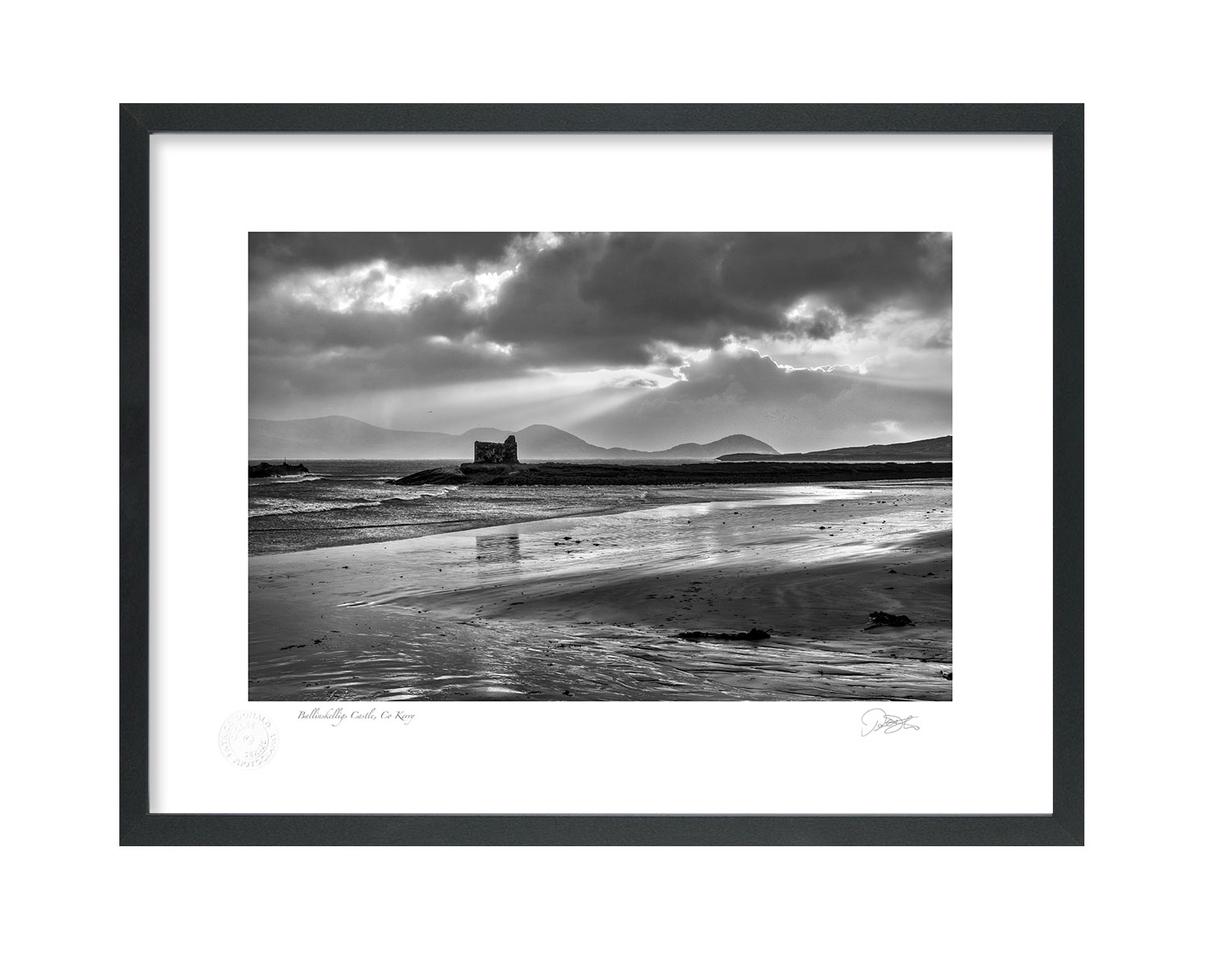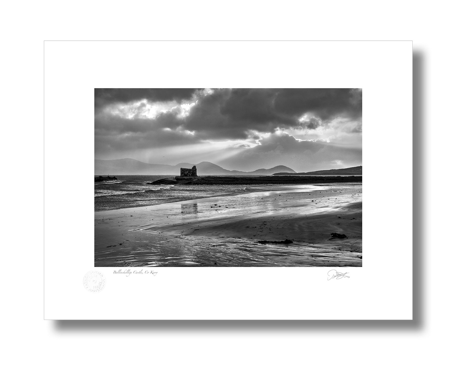 Ballinskelligs Castle Co Kerry is a Fine Art Black and white Open Edition Print by Patrick Donald. Framed Photography of Ireland is delivered to your door from his studio in Kilkenny. He is an award-winning Irish landscape and documentary photographer who takes pride in his craft.