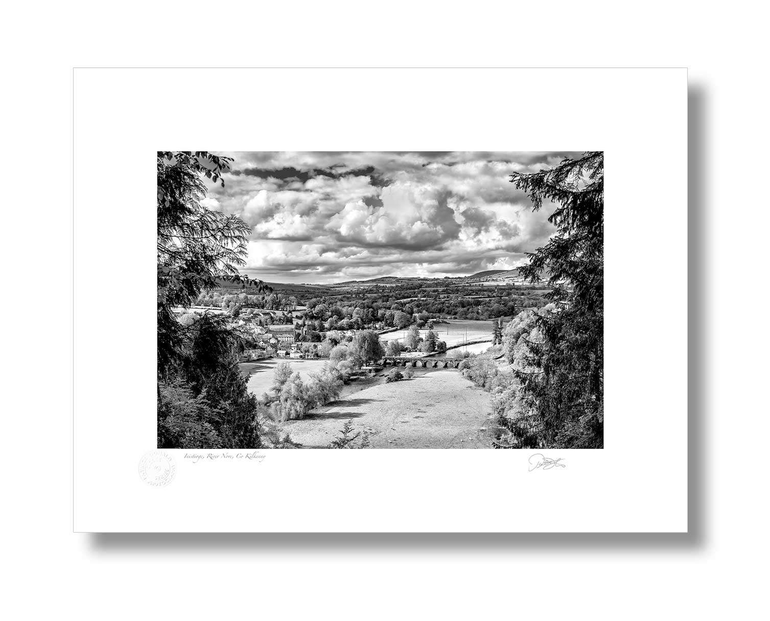 Inistioge, River Nore, Co Kilkenny is a Fine Art black and white Print by Patrick Donald. Framed Photography of Ireland is delivered to your door from his studio in Kilkenny—an Award-winning Irish photographer who takes pride in his craft.