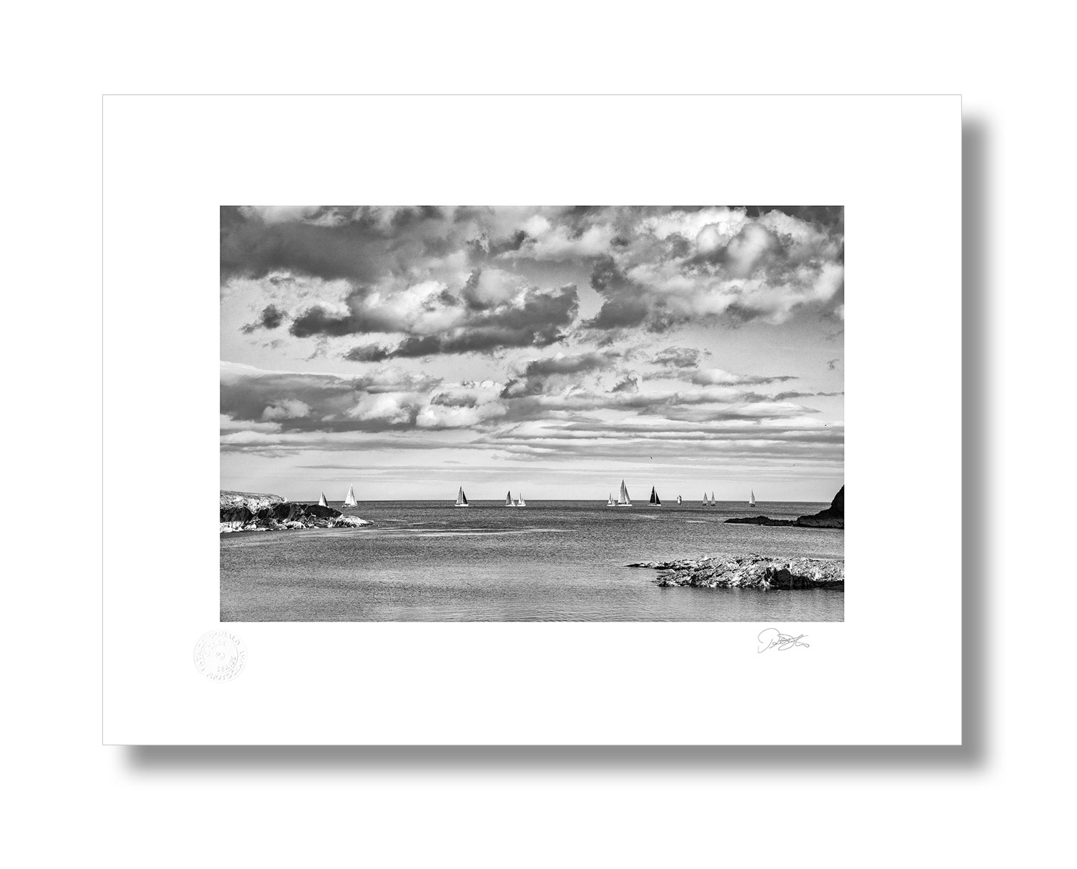I often swim in Sandycove in Dublin and here at this stunning location near Kinsale. On a beautifully sunny day, I put my black and white photography gear together and put it to work on the distant sailing boats.
