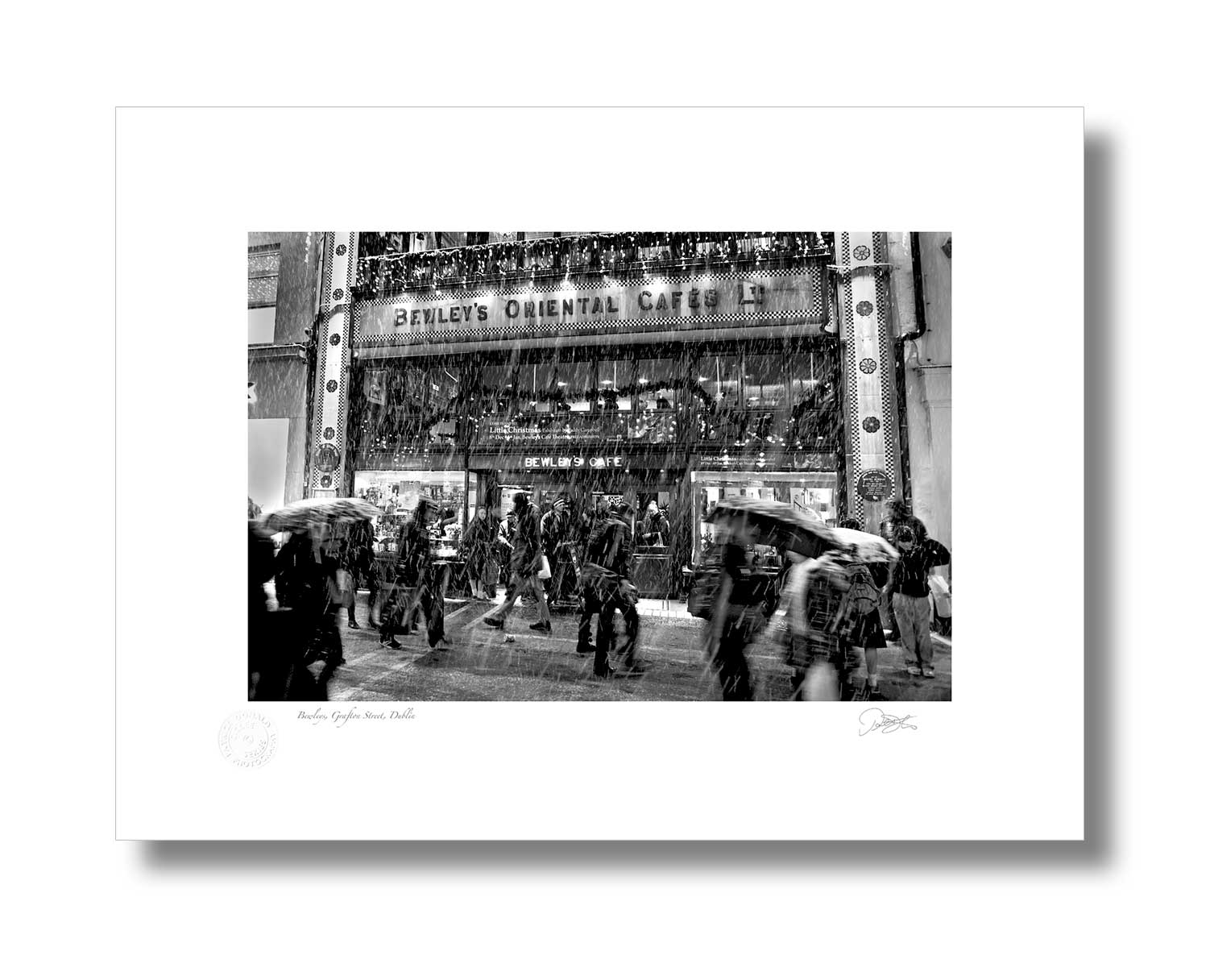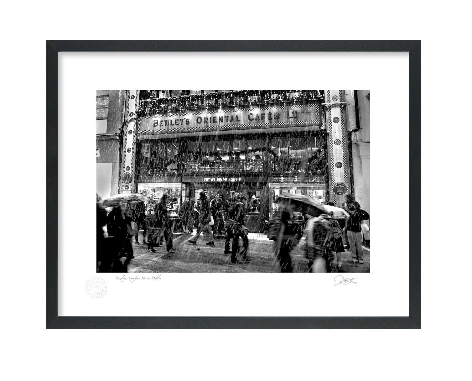 Bewley’s Grafton St. Dublin is a Fine Art Black & White Print by Patrick Donald. Framed Photography of Ireland is Delivered to your door from his studio in Kilkenny. An award-winning photographer who takes pride in his craft.
