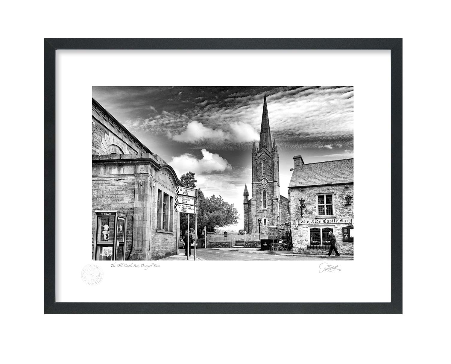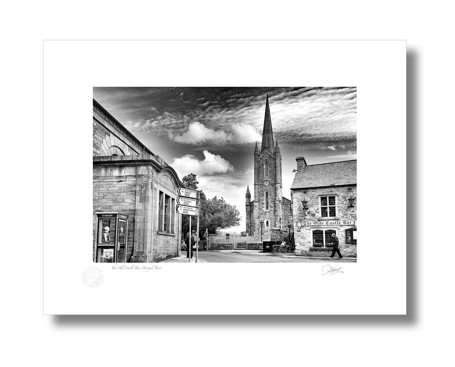 The Old Castle Bar, Donegal Town is a Fine Art Black & White Open Edition Print by Patrick Donald. Framed Photography of Ireland is Delivered to your door from his studio in Kilkenny, Award-winning Irish Landscape & Documentary photographer who takes pride in his craft.