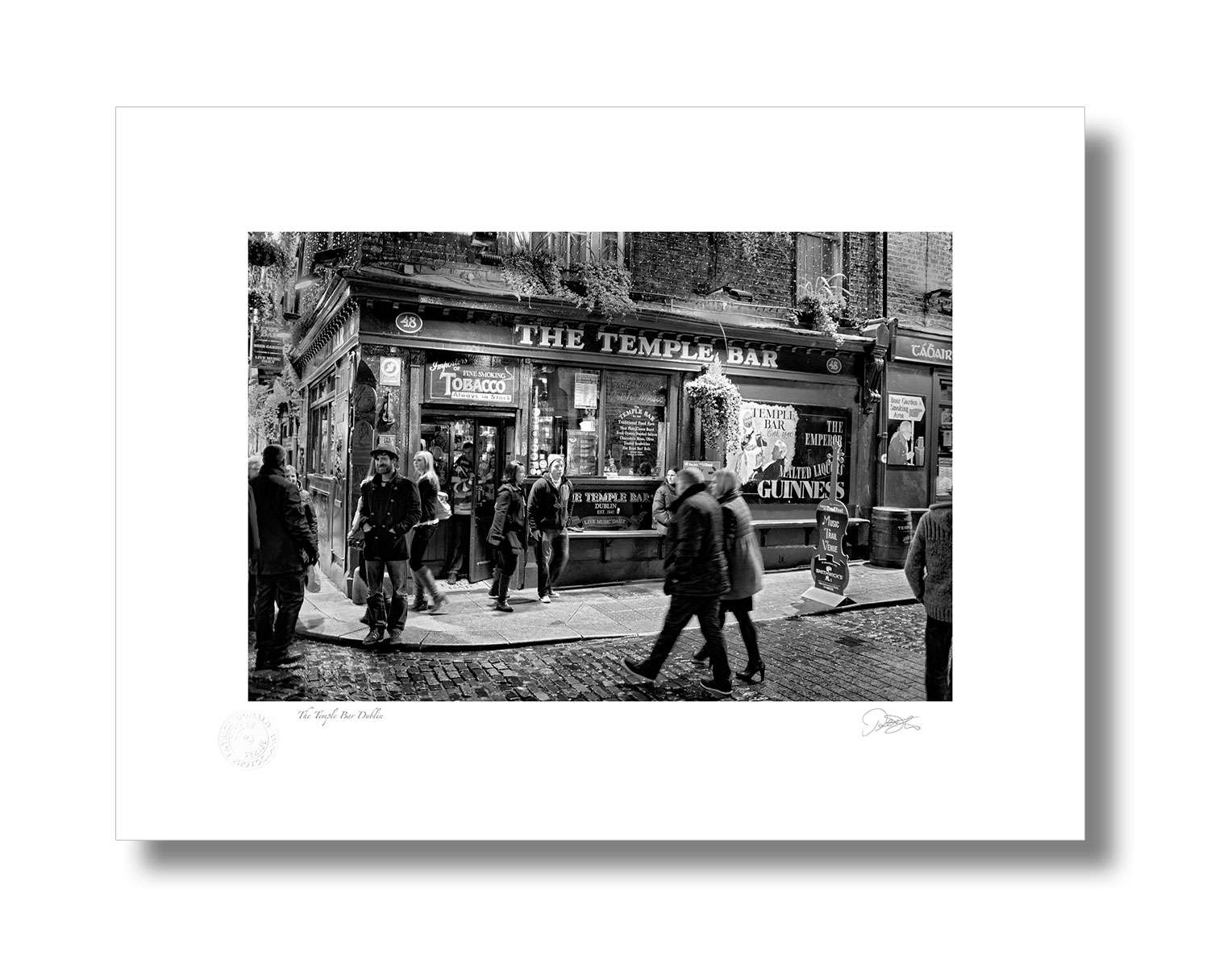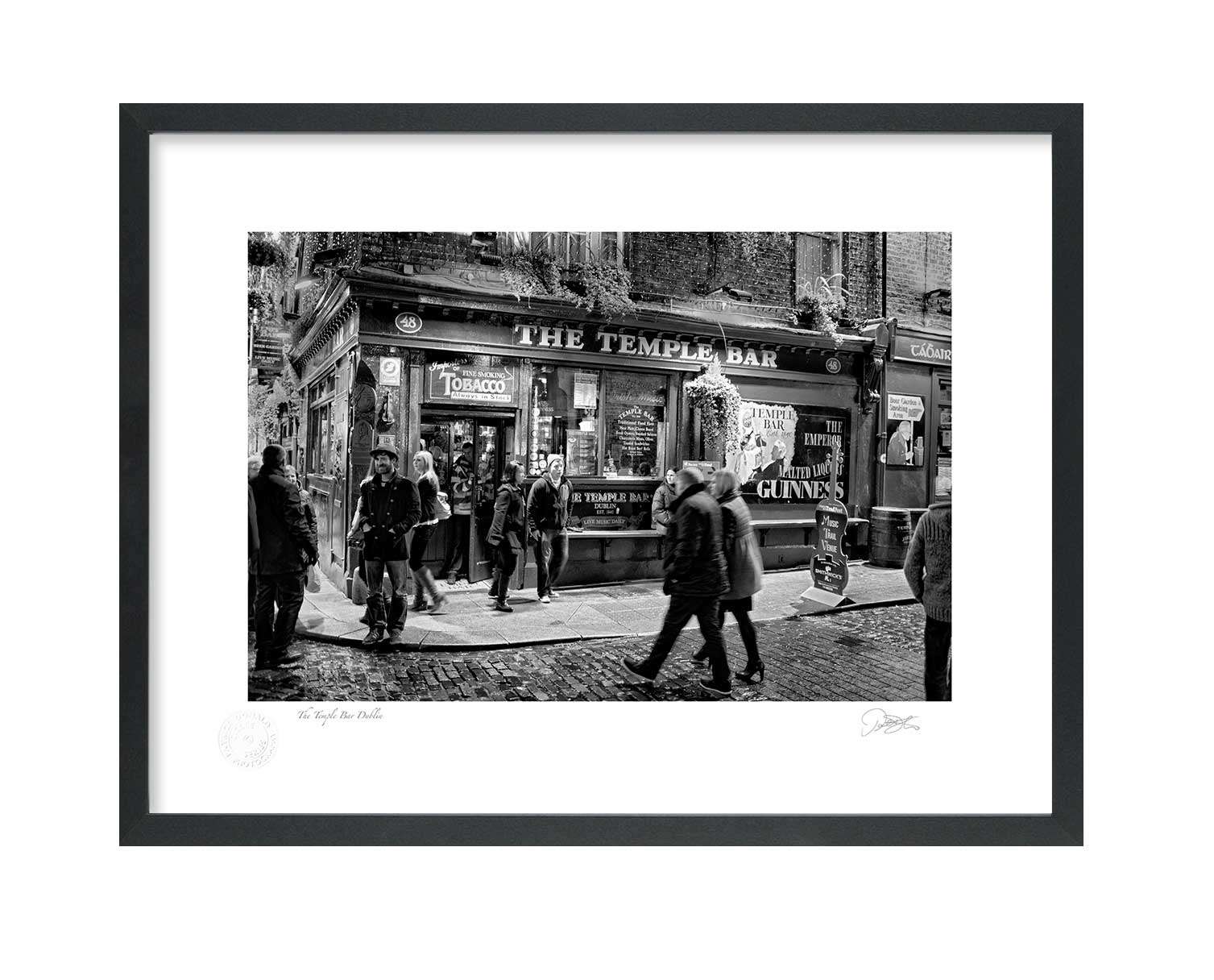The Temple Bar, Dublin is a Fine Art Black & White Print by Patrick Donald. Framed Photography of Ireland is Delivered to your door from his studio in Kilkenny. An Award-winning Irish documentary photographer who takes pride in his craft.