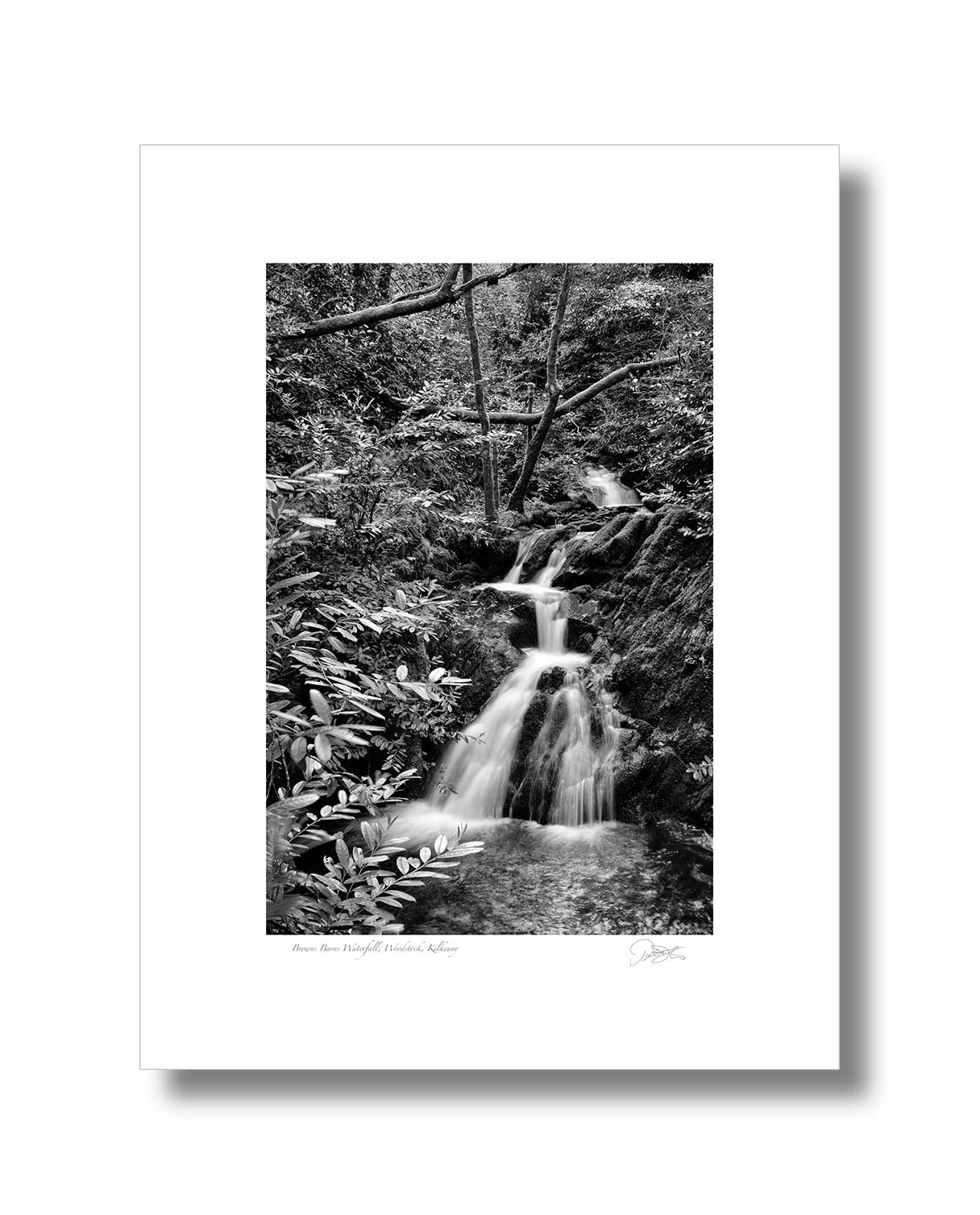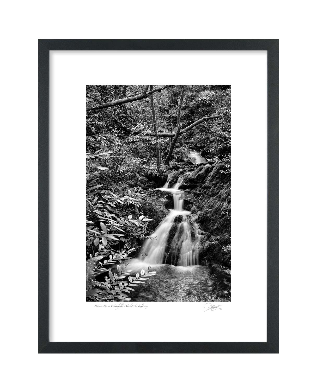 Browns Barns Waterfall, Woodstock, Kilkenny is a Fine Art Black & White Open Edition Print by Patrick Donald. Framed Photography of Ireland is Delivered to your door from his studio in Kilkenny, Award-winning Irish Landscape & Documentary photographer who takes pride in his craft.