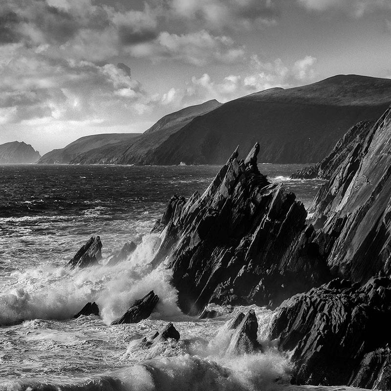 Welcome to my world of fine art photography. For over three decades, I’ve been capturing the soul of Ireland through my lens, specialising in both dramatic landscape photography and compelling street scenes. My passion for black and white photography allows me to reveal the timeless beauty of Ireland’s landscapes – from the windswept coastlines of the Wild Atlantic Way to the ancient streets of Dublin.
