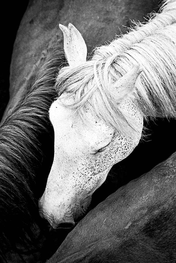 Rapa das Bestas, or “Shaving of the Mares,” is a traditional event in Galicia, Spain, where the manes of the wild horses are trimmed. Held in enclosed areas called churros, this operation involves marking foals, shaving, and delousing adult horses. These horses roam freely in the mountains, a practice dating back to the 8th century. After the event, the horses are released back into the wild. This portrait captures the profound humility and innate intelligence of a truly wild horse. Beyond its physical form, the image resonates with an energy and consciousness that speaks to the spirit of this magnificent animal.