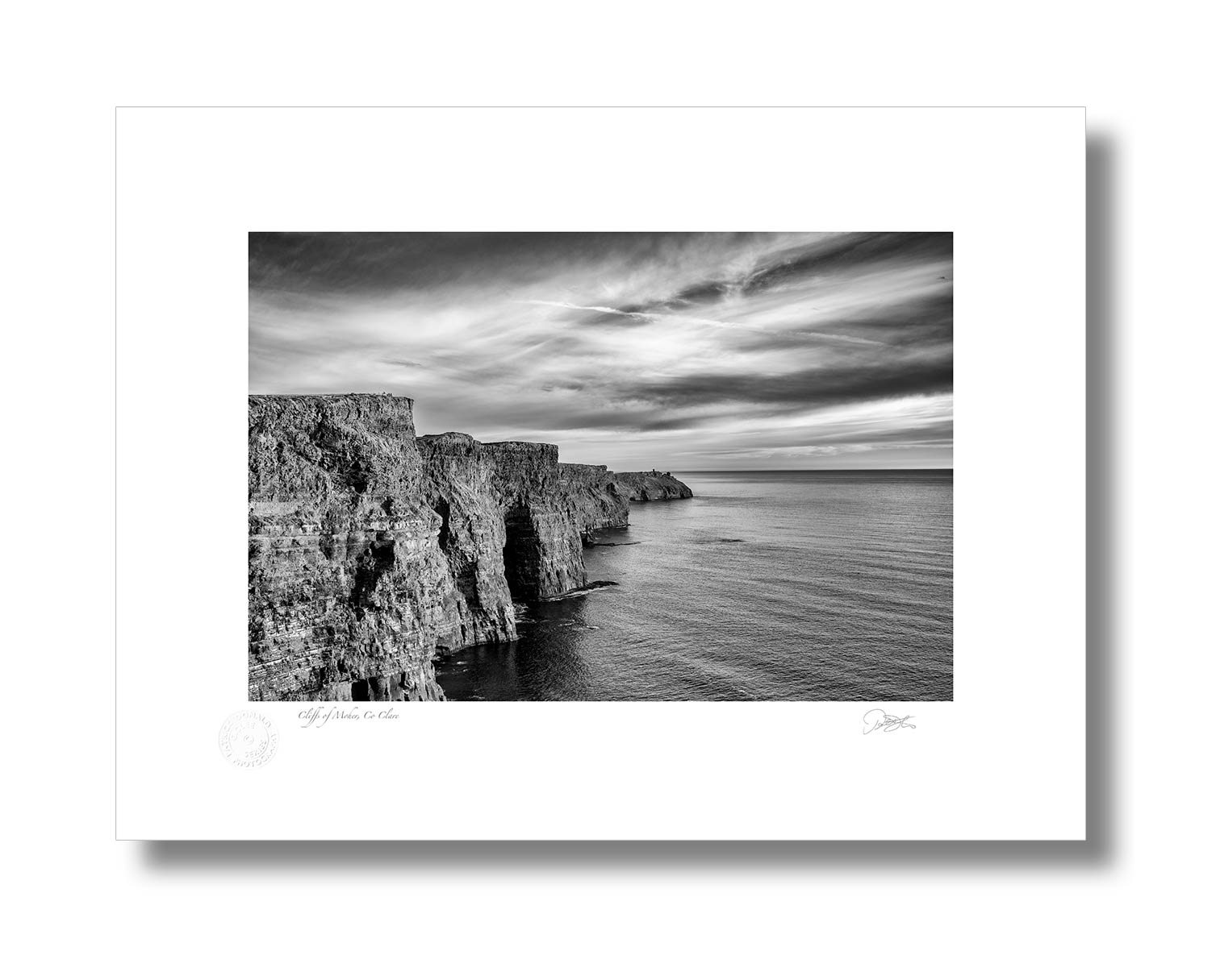 Cliffs of Moher Co Clare is a Fine Art Black & White Print by Patrick Donald. Framed Photography of Ireland is Delivered to your door from his studio in Kilkenny, an Award-winning Irish Documentary photographer who takes pride in his craft.